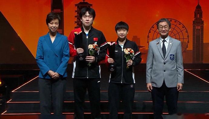 张怡宁为孙颖莎王楚钦颁奖 WTT香港总决赛混双颁奖礼,张怡宁为孙颖莎和王楚钦颁奖