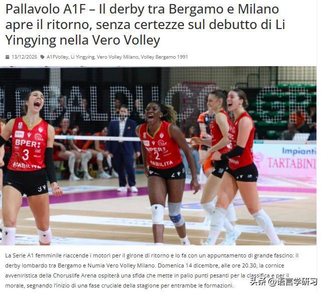 神秘的李盈莹意甲首秀引起意大利媒体的极大关注 意媒:贝加莫与米兰的德比拉开下半
