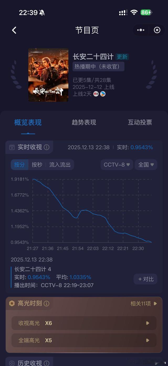 今天24计的收视率走势也是一路向下 ,谁能想到这是周六啊