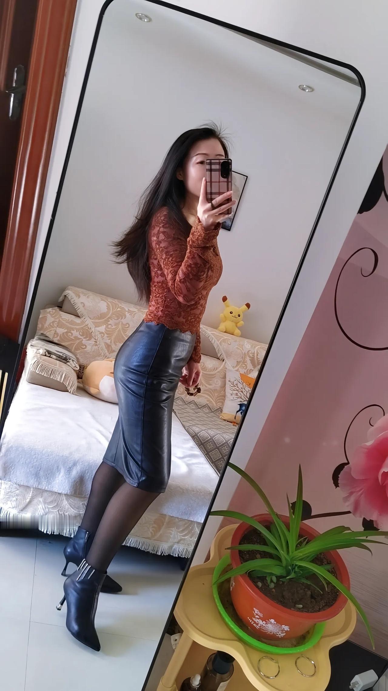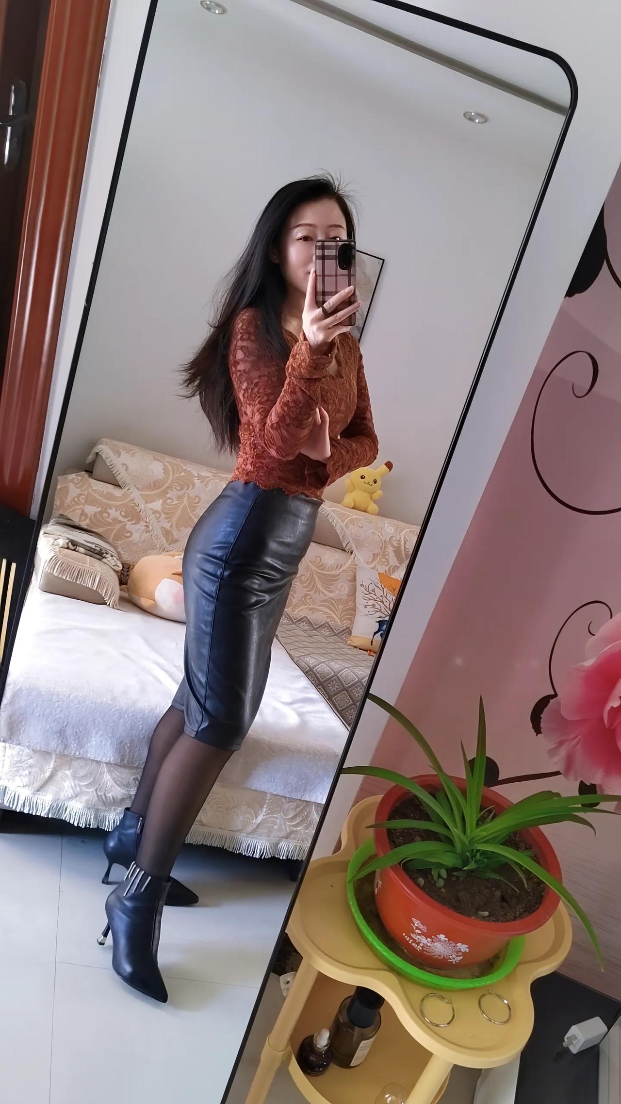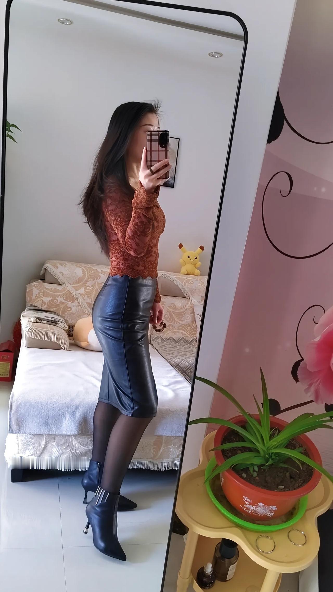 优雅穿搭指南:棕色毛衣+黑色皮裙,时尚又显瘦!