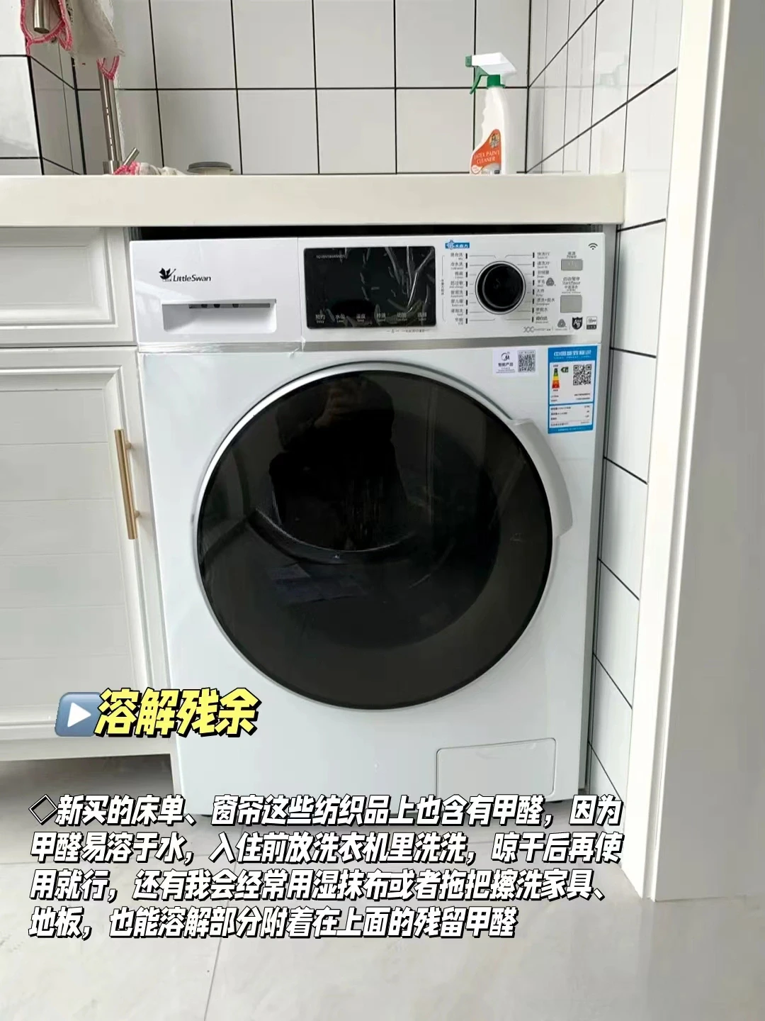 ◇新买的床单、窗帘这些纺织品上也含有甲醛,因为甲醛易溶于水,入住前放洗衣机里洗洗,晾干后再使用就行,还有我会经常用湿抹布或者拖把擦洗家具、地板,也能溶解部分附着在上面的残留甲醛