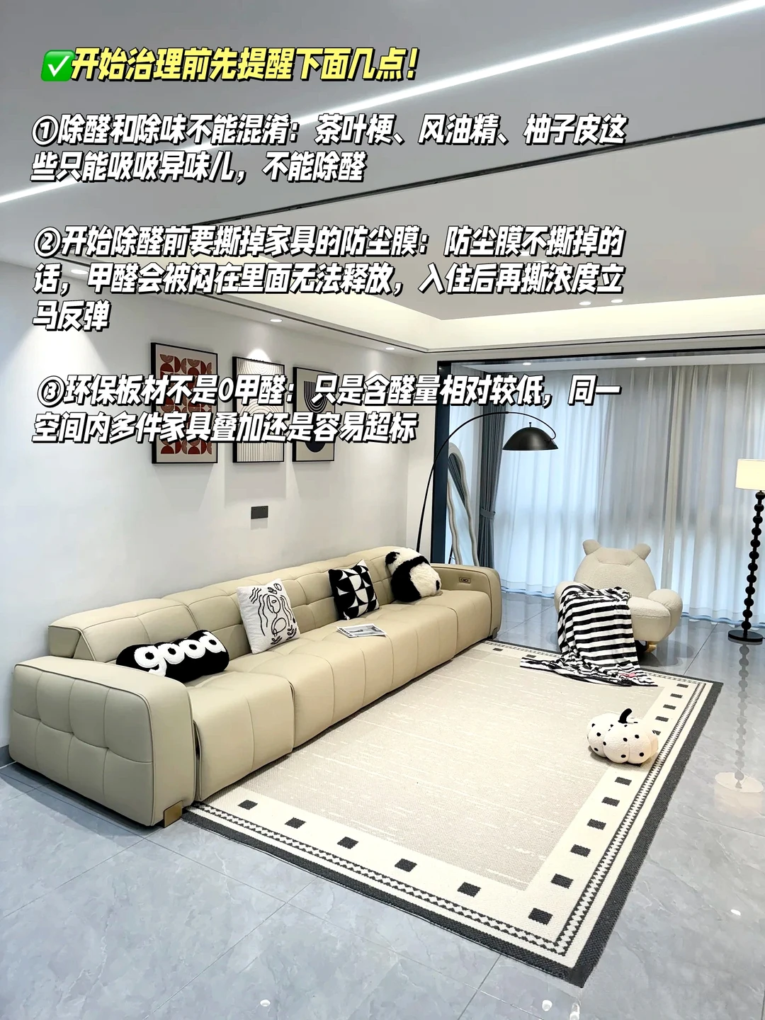 ②开始除醛前要撕掉家具的防尘膜:防尘膜不撕掉的话,甲醛会被闷在里面无法释放,入住后再撕浓度立马反弹