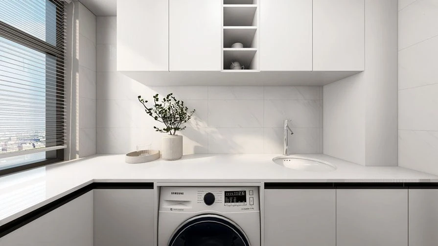 💘经典的L型布局厨房,操作台功能分明。合理的动线安排为未来长期的生活留足了空间,开放式的设计方便互动,让主人在做饭时也能拥有好心情。整体奶油白的色调搭配,不仅还原了原始无负担、高质量的生活状态,又充满氛围感,诠释出人间烟火的幸福感。