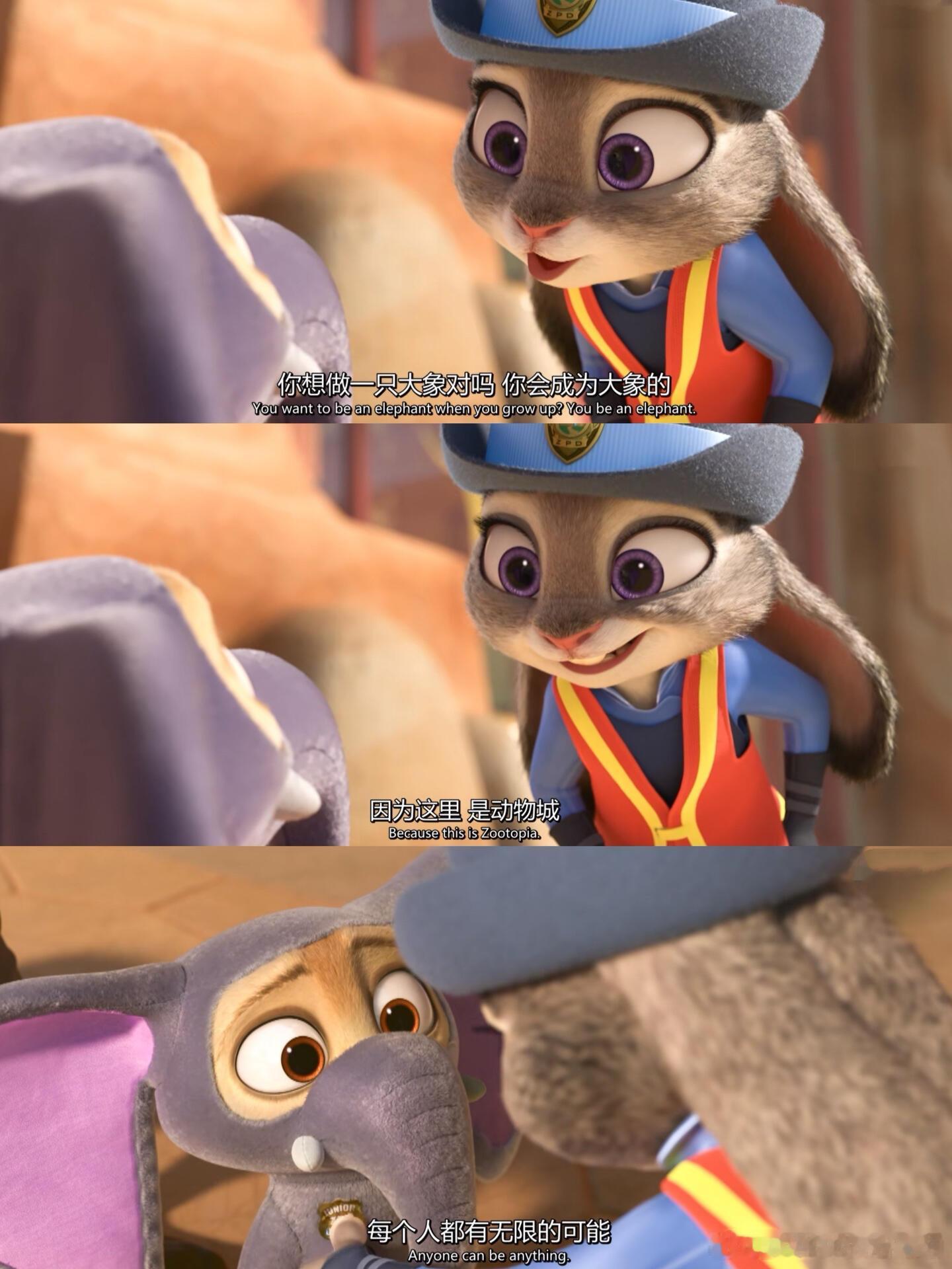 “你想做一只大象吗?你会成为大象的,因为这里是动物城,每个人都有无限的可能。”在动物城,无论你是大象还是鼩鼠,我们都可以得到尊重、得到爱 ❤️疯狂动物城跨年电影愿