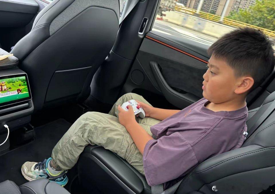这可真是“慈父多败儿”啊——嘴上说着不让孩子玩游戏,把家里的Switch藏得好好的,转头又买个手柄,让儿子在特斯拉上打着解闷