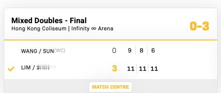 五味杂陈的一场比赛!理解也不太理解的一场比赛!希望能引起各方思考的一场比赛!WTT香港总决赛混双决赛,孙颖莎带伤出战。最终,王楚钦/孙颖莎以9-11、8-11、6-11,大比分0-3负于韩国组合林钟勋/申裕斌,获得亚军。孙颖莎王楚钦混双亚军