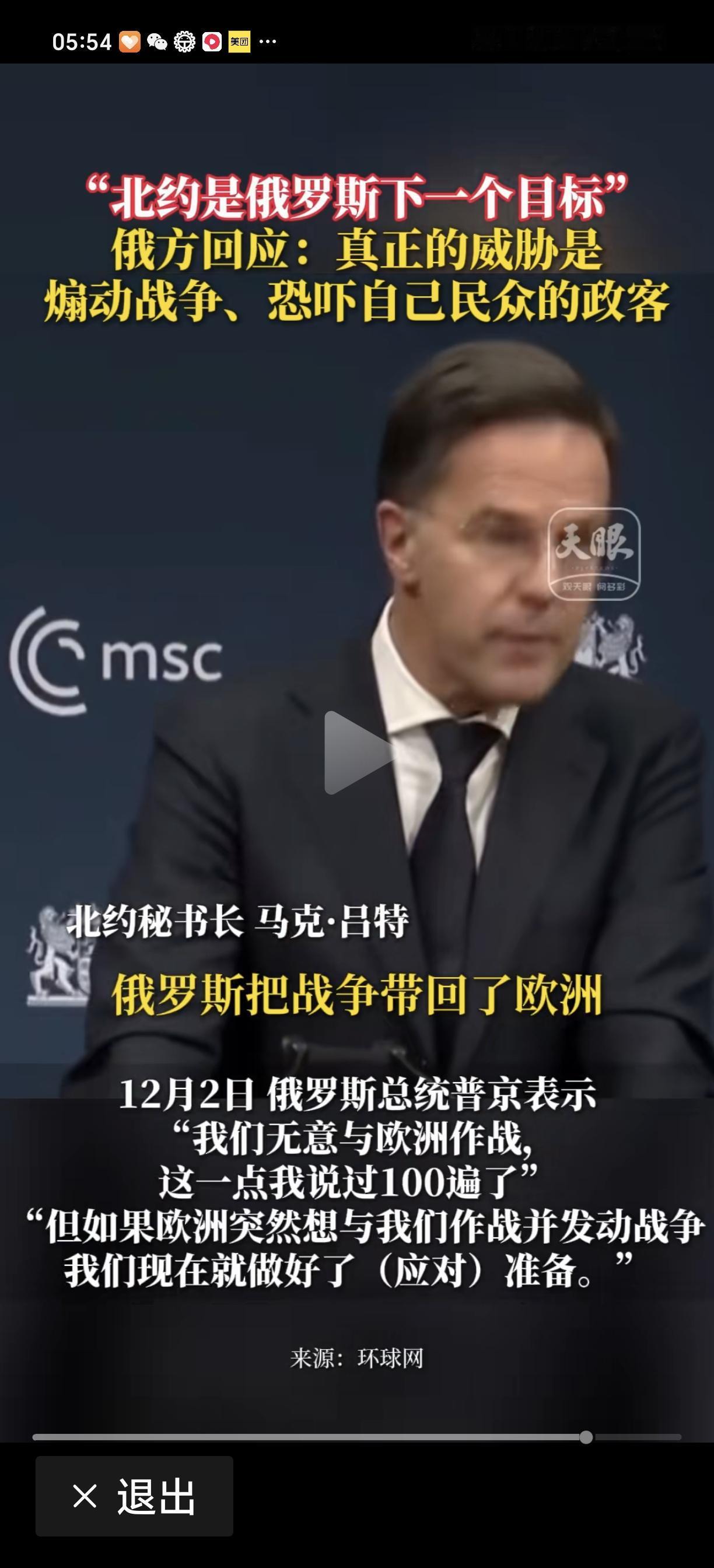 贼喊捉贼的把戏越来越令人担忧,俄罗斯又成了北约的眼中钉,肉中刺,最大的假想敌。 苏联解体,华约解体,按要求,北约应该解体,北约不但不解体,反而变本加厉的扩充地盘,现在欧洲方向。俄罗斯以西,还有哪几个国家没加入北约?目前只有白俄罗斯等少数国家,还没有加入北约。 乌克兰拼了命的要挤进北约,硬钢俄罗斯,爆发了俄乌战争,战争初期北约国家处于亢奋期,想利用乌克兰拖垮俄罗斯战争快四年了,俄罗斯没有垮,而且战场上占着主动权,乌克兰近20%的领土。在俄军的控制之下,打败俄罗斯,拖垮俄罗斯的计划彻底失败。而乌克兰这个棋子废了,北约怎么办呢? 现在美国要抽身俄乌战争。欧洲方面着急了,又开始推出了俄罗斯威胁论,北约这是要赤膊上阵吗?开始拱火整个欧洲吗?要跟俄罗斯干吗? 北约是一个军事组织。不考虑什么经济发展不发展,专门考虑怎么挑起人类战争,怎么在战争中发财,才是他们的目的,和平对他们来说是一种灾难,因为有了和平,他们存在的价值和意义就不明显,因此北约开始拱火欧洲。又把俄罗斯当成假想敌。玩起来火中取栗的把戏,试想一下俄罗斯跟欧洲爆发战争?谁得的好处最大? 总之,北约的存在,就是一部战争机器。他们不想着和平,只想着拱火,直到把自己给拱没了,就舒服了。