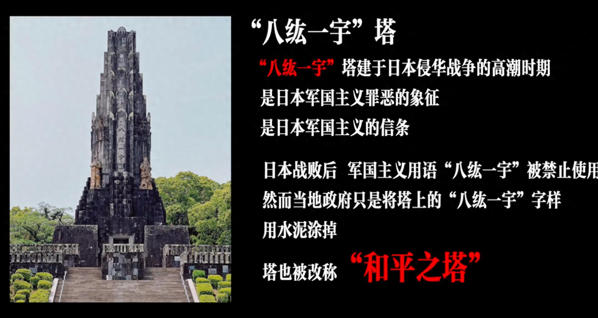 日本八纮一宇塔应当被拆除 这座塔的基石裹挟着包括中国在内多个被侵略地区的殖民伤痕,其存在本身就是对历史真相的漠视,唯有拆除才能告慰曾遭掠夺与伤害的民众,还历史以公正。