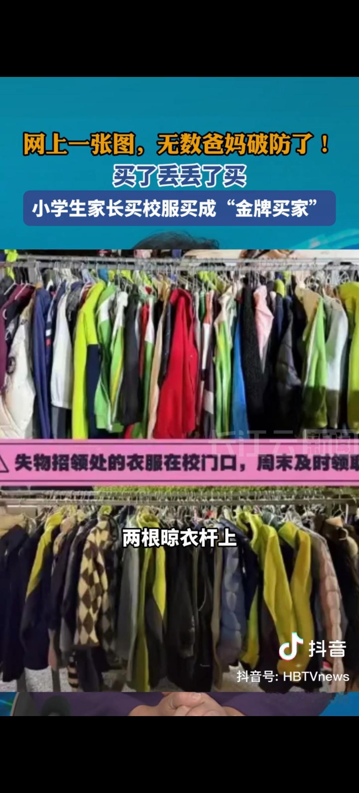 “肉疼啊!”浙江杭州,一位家长发现儿子的外套在学校丢了,于是来到学校招领处找寻,结果看到晾衣杆直接傻眼了,两根晾衣杆上密密麻麻挂满了衣服,不知道的还以为是服装店。家长把这一幕分享到网上,引起了不少家长的共鸣。 这位家长金女士,她儿子读六年级。说起孩子丢校服的经历,金女士满是无奈。“我儿子那春秋季的棒球服,因为常穿常脱,丢得最频繁,几乎每年都得买两套新的,成了网店的‘金牌买家’。一套校服好几百,每次下单都心疼得不行。” 学校失物招领处的两根晾衣杆上,挂满了至少60件无人认领的外套,各种款式都有,乍一看还真像个服装店。负责管理的老师说:“这些衣服都是学生们在学校里丢失的,我们每周都会整理一次,但还是有很多没人来认领。” 在家长群里,金女士的遭遇引起了不少共鸣。一位五年级学生的妈妈说:“我家孩子更离谱,一学期丢了三件外套、两双鞋,问他丢哪儿了,他自己都不知道。现在我给孩子的每件衣服上都绣了名字,可还是照丢不误。” 金女士也尝试过各种办法,比如给衣服缝名字、每天提醒孩子检查物品,但效果都不太理想。“孩子总是处于‘状况外’,丢了衣服跟没事人一样,可把我们当家长的急坏了。” 现在,学校打算在每件校服上都印上学生的姓名和班级,希望能减少校服丢失的情况。金女士觉得这是个不错的办法,“至少能让捡到的人知道是谁的,也好归还。不然这么多衣服堆在招领处,看着都糟心。” 网友们也纷纷支招,有人建议给孩子买带定位的智能校服,有人觉得要从小培养孩子整理物品的习惯。金女士说:“不管用什么方法,只要能让孩子少丢点衣服,我都愿意试试。不然这‘金牌买家’的称号,我是真不想再‘蝉联’了。” 各位读者你们怎么看?欢迎在评论区讨论。 来源:长江云新闻 2025-12-12报道