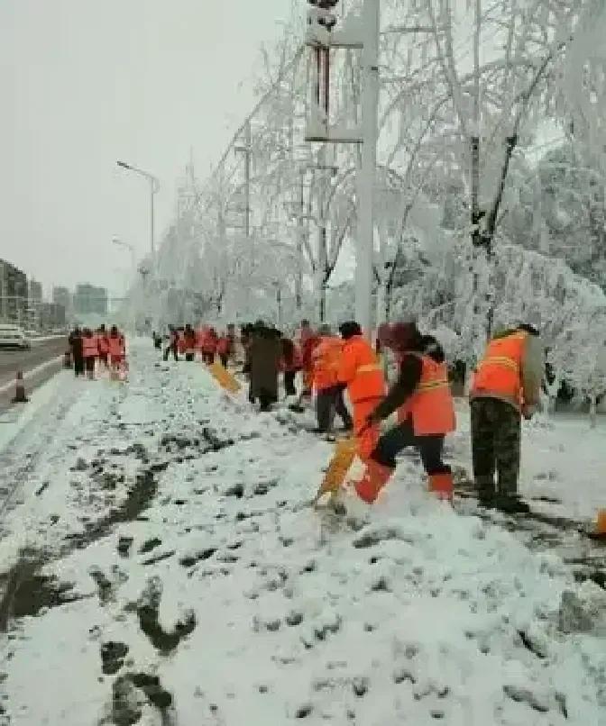 太原凌晨四点开始飘雪,环卫大爷大妈和社区小哥大姐就拎着铁锹上街,雪没停他们也不停,主干道扫完钻背街小巷,鞋面全湿,帽子边结一圈冰碴子,中午蹲路边啃两口冷包子又继续干,到晚上十点还在撒融雪剂,第二天早高峰车能跑、人能走,全靠他们一夜没合眼。 城市不是自动变干净的,是有人替你扛住风雪。 下回看见扫雪的,别只拍照点赞,递杯热水也算没白受人家这份累。