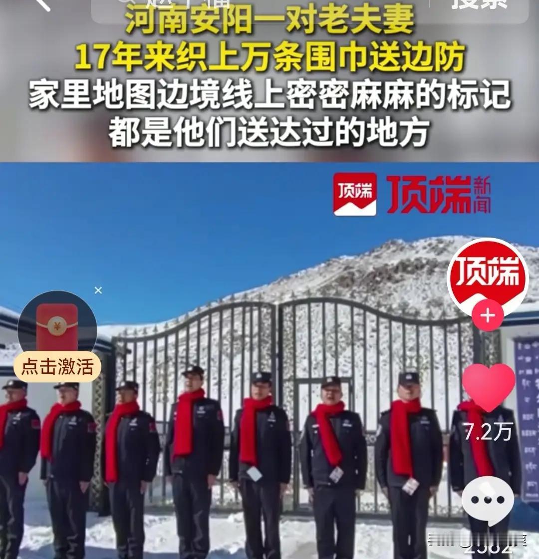 老夫妻17年坚持为边防官兵织上万条围巾的感人事迹 近日,一段关于一对普通老夫妻