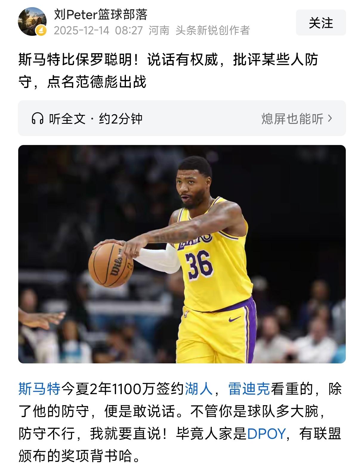 湖人的问题不是球员防守太差, 是没有好的防守战术。 斯玛特会后发声点出球员防守问题, 雷迪克也说激活范德彪。 他们只看到老詹和东子不防守, 不敢说出真正的问题, 就是雷迪克根本就没有防守战术, 一个射手根本就不理解防守的重要性。 同样这群球员在波波维奇手下, 起码有当年马刺一半的防守能力。 就算前几年阵容差在头孢手底下, 湖人的防守也不算太差。 所以湖人激活谁也没用, 球队的整体防守问题不是靠个别球员, 湖人赶快换马龙教练才是正确的选择, 需要老詹放弃和马龙的恩怨, 再不济也找一个第一防守助教。