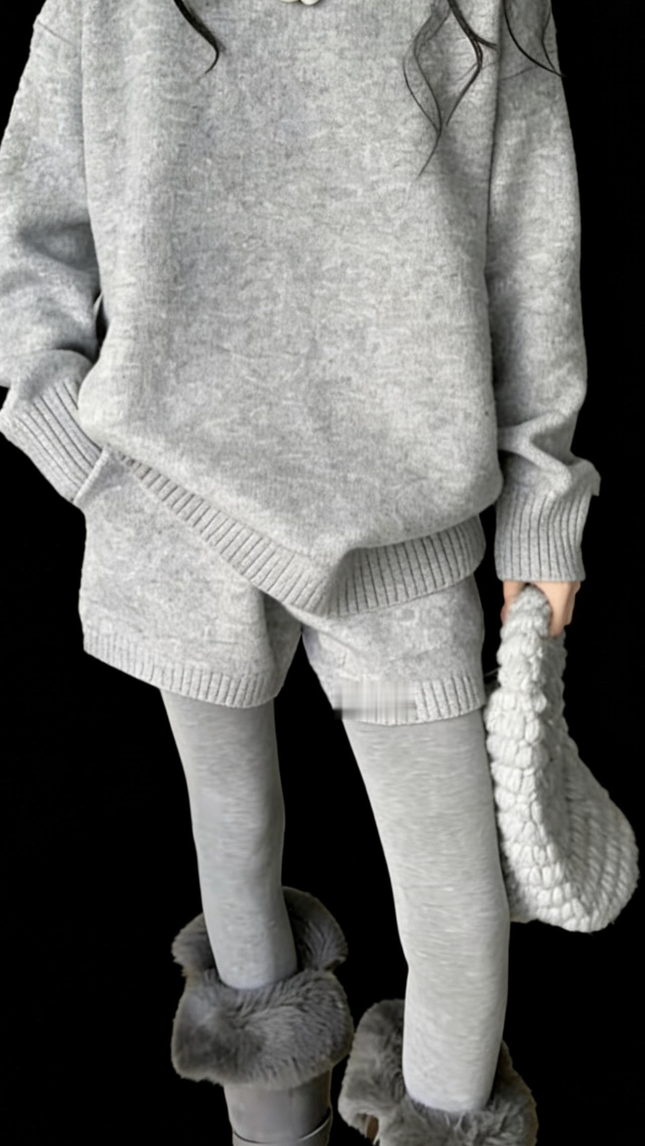灰色针织套装的慵懒感谁懂啊! 吊带裙搭宽松开衫,软糯又显瘦, 秋日和猫咪一起拍氛