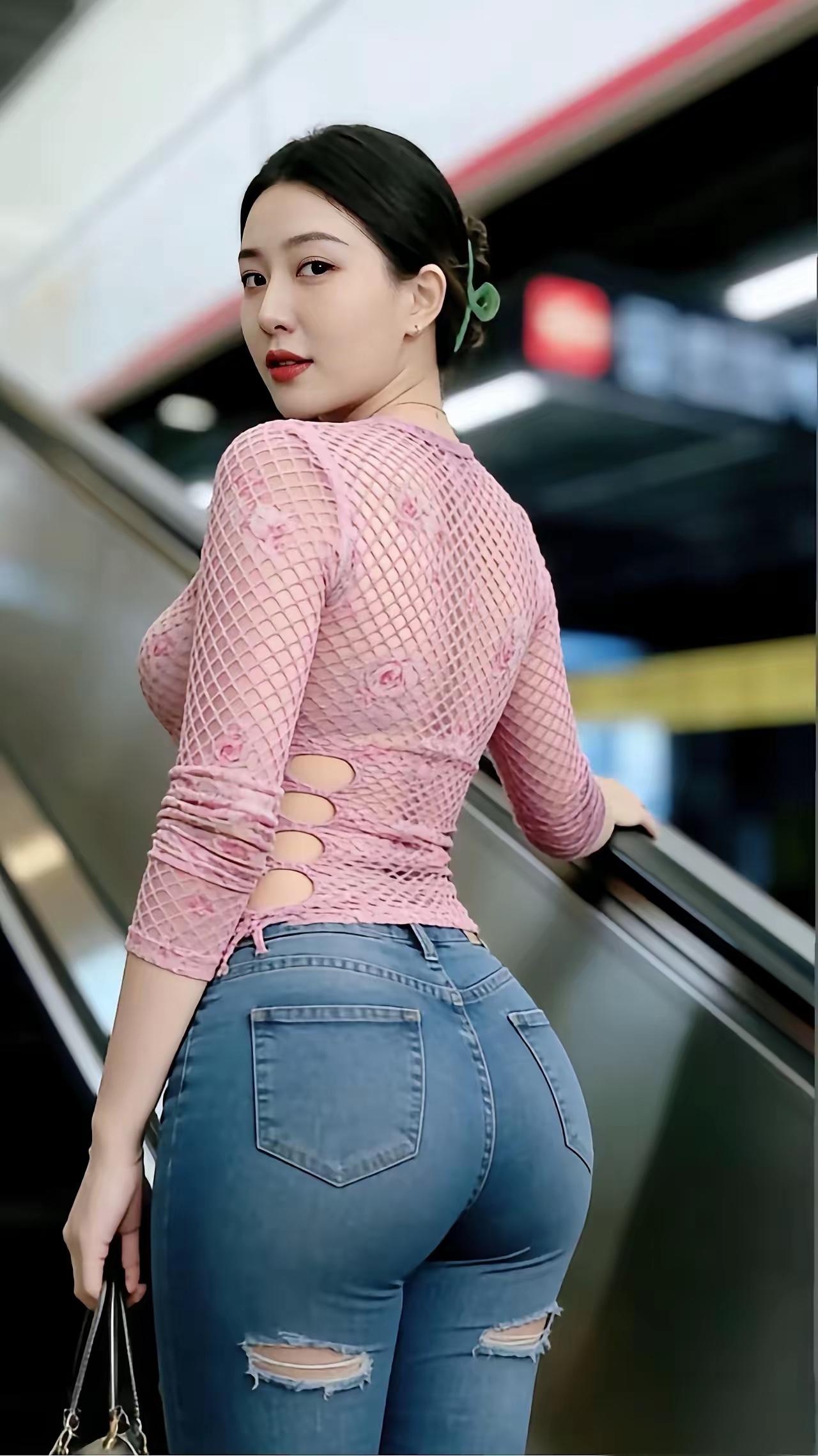 紧身牛仔裤长发美女,简单的搭配,紧身体恤,紧身牛仔裤,尽显美好身材。