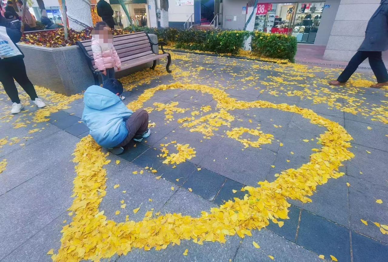 [太阳]昨天我重庆渡区很热闹啊,天上有“雕”——喜山鵟(比“座山雕”小两圈[尬笑]);地上有小朋友用银杏叶“疯狂比心”[比心]…听说,还有条“双色路”也🔥了[灵光一闪]