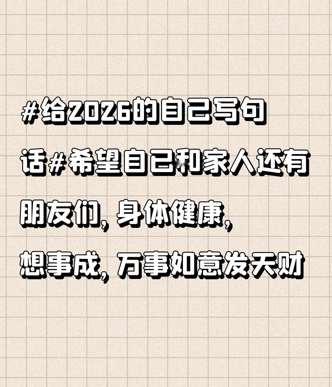 给2026的自己写句话希望自已和家人还有朋友们,身体健康,想事成,万事如意发天财