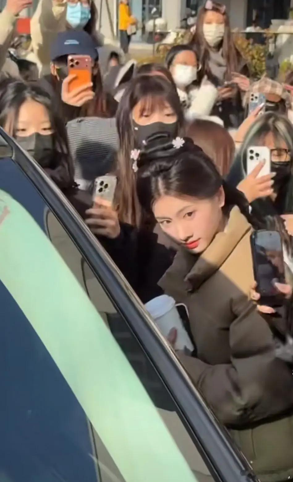 吴艳妮在成都穿着短裤大腿看起来很粗壮,表情自信又张扬