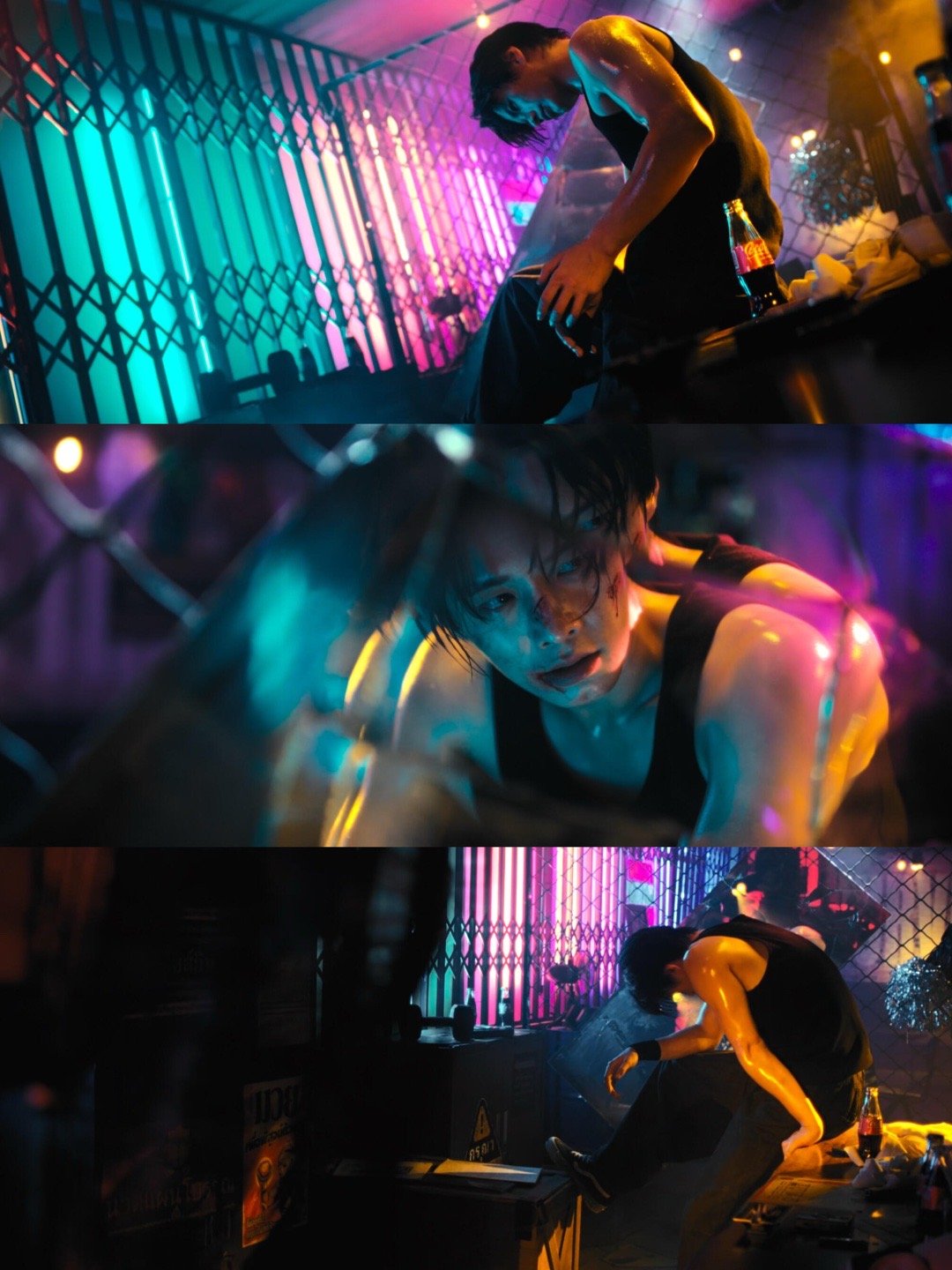 双轨导演拍出了这种镜头自己也很爽吧💧打光、置景、构图都太对味了,红绿光交错下的