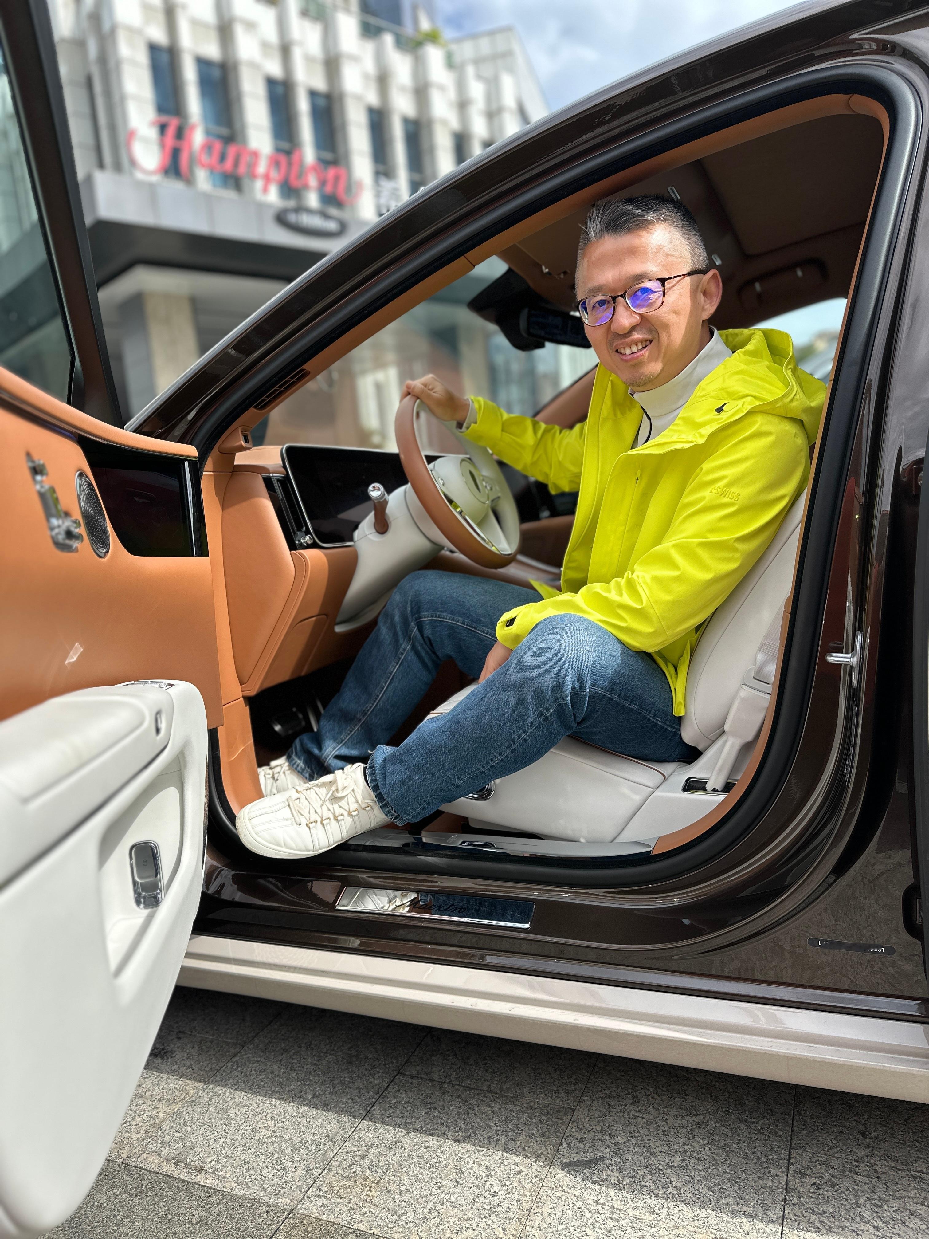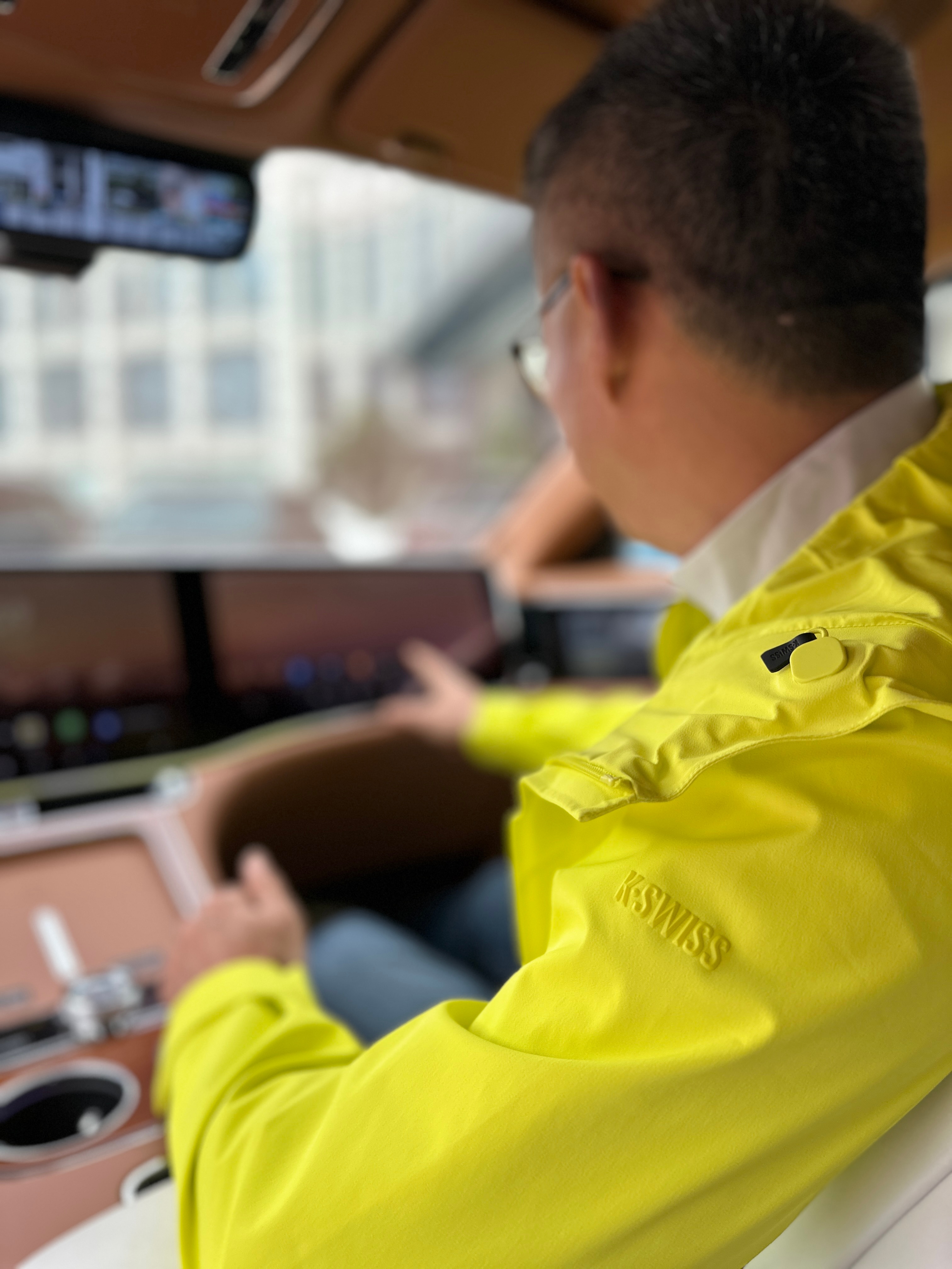 昨天下了一场雨,东莞感觉终于进入。。。初秋了。赶紧把这件厚外套穿出来,否则明天温度又回升到二十多度,就没机会穿了。为了每天穿出不同的今日look,我真的把家里所有K家的衣服都带过来了!现在我在等专车司机ZZZ下楼去球场,然后我这身荧光黄就可以亮瞎东莞网球中心了。张之臻这新车,像船一样宽敞,内饰非常豪华。按钮很多,我也不太好乱按。那就模仿一下他的硬照拍张图吧,然而我的左脚并不能触达地面果然腿长才可以为所欲为。。。新车 |今日穿搭 东莞