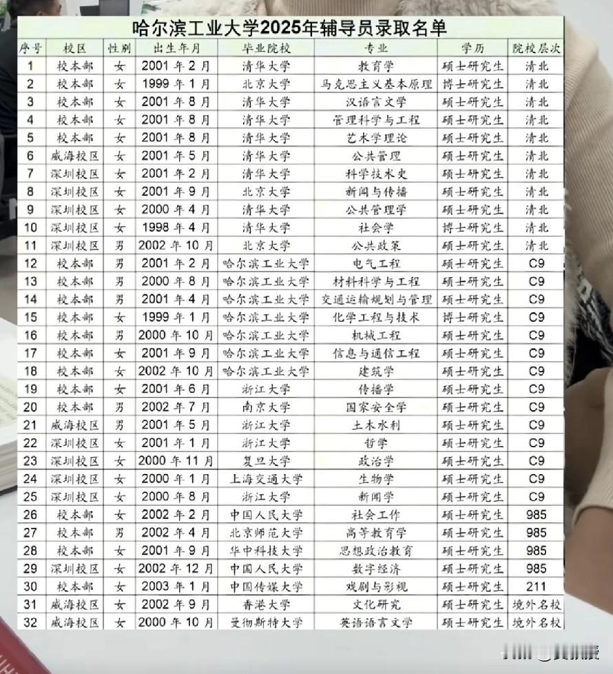 哈尔滨工业大学 辅导员录取名单 现在辅导员是很好的岗位,有编制 不用非升即走