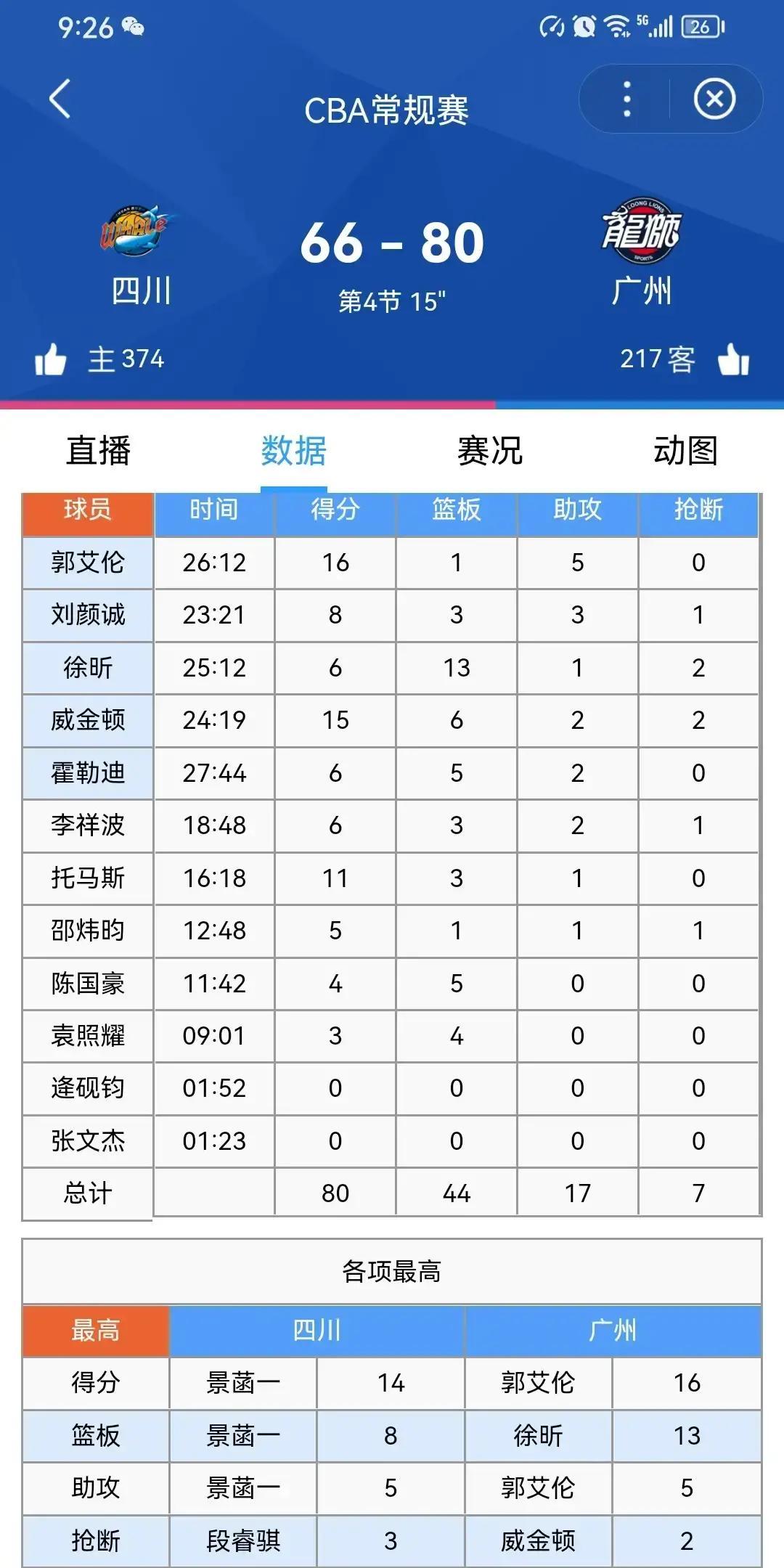 那个爱跟裁判较真的男人,终于回来了。 CBA首战对阵四川,郭艾伦打了26分钟。12投7中,罚球4中2,拿了16分5助攻1篮板,只有3次失误。数据看效率挺高,表现也亮眼。这状态,谁还敢说他油箱没油? 最让人眼熟的是第三节。他上篮得分后,又追着裁判理论,直接吃了个T。这一幕多少年没见了,跟以前一模一样。 岁月好像慢了他的脚步,但那股子较真的劲儿,一点没改。