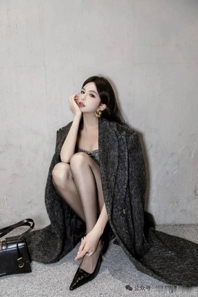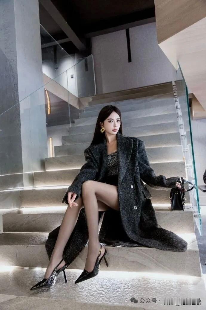 优雅黑丝袜,时尚大外套,都市女郎风范
