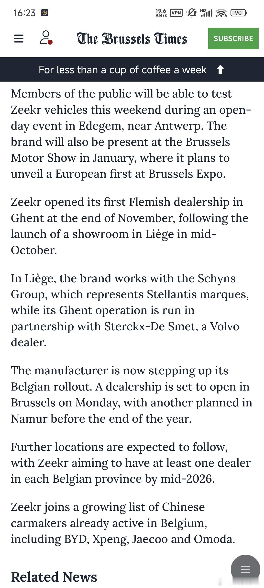 看看极氪这排面,在比利时布鲁塞尔时报的内容中没有使用车型照片,而是一个大LOGO