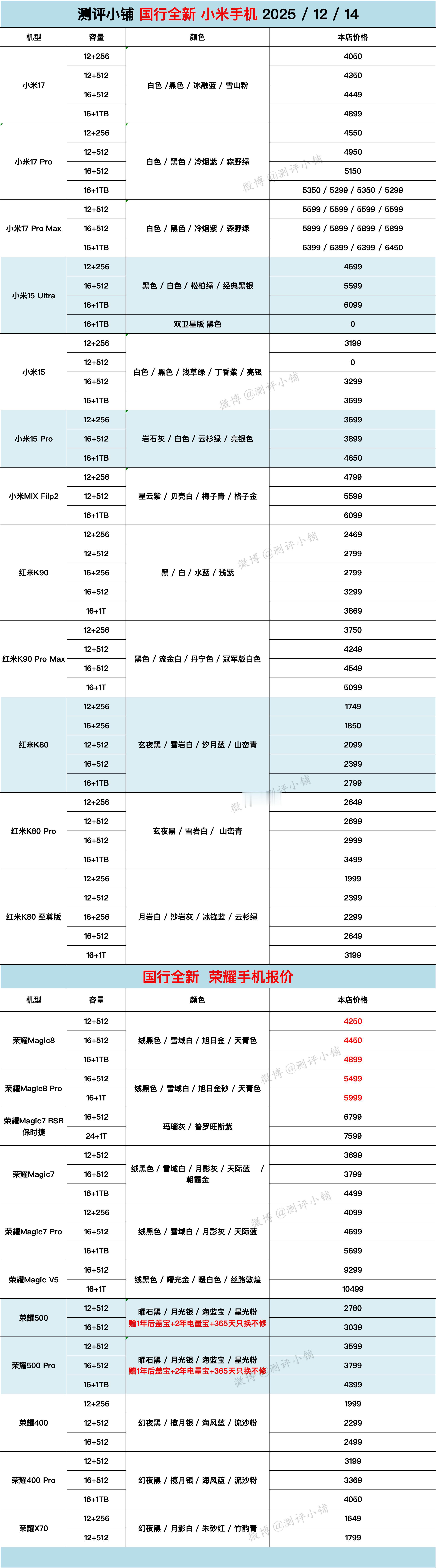 华为Mate X7,Mate80 Pro+,小米17系列,OPPO Find X9系列,vivo X Fold5,iQOO15,一加15系列等更新