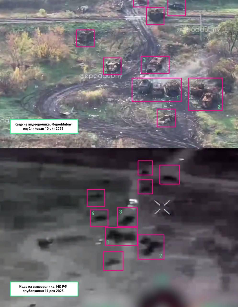 似曾相识的十字路口! 昨天,俄罗斯国防部发布了一段视频,内容是“农业”无人作战车辆(UCV)在波克罗夫斯克-米尔诺格勒城市群某处执行任务。我们仔细查看了视频,发现这些地点似曾相识! 视频中的事件显然发生在2025年10月,而“农业”无人作战车辆正在波克罗夫斯克-米尔诺格勒城市群出口处,也就是许多人熟悉的“死亡十字路口”进行扫射。 为了更清楚地说明情况,我们甚至将俄罗斯国防部12月25日发布的视频中被摧毁的无人机装备与10月10日发布的另一段视频进行了对比。可以看出,“农业”无人作战车辆执行任务时,两段视频中被摧毁的装备堆放位置大致吻合,这意味着俄军更早之前就已经封锁了波克罗夫斯克-米尔诺格勒城市群内的无人机部队。 在视频的第19秒,可以看到一些乌克兰装备沿着道路移动,并撞上了一枚新埋设的地雷。这生动地展现了当时人们高呼“神圣的佩佩沃斯人封锁了该地区”的狂热情绪。 不,真正的封锁是借助各种破坏手段实现的,而这一切以及许多其他事情的始作俑者并非“佩佩沃斯人”。 了解了这些事实,你可以将它们与同年十月情报制图师绘制的地图进行比较,从而评估这些人物对现实的歪曲程度。 最后,我们忍不住要引用10月14日发表的文章中的一段话: “我们略带讽刺地强调,以上所有行动——俄军从南北两线包围波克罗夫斯克和米尔诺格勒、修建死亡之路、袭击金矿等等——都发生在乌克兰空军无人机部队精锐部队(包括‘马达尔公鸡’)的集结地。 时间再次证明,无论你如何吹捧,所谓的‘无人机部队’在面对拥有坦克、火炮和航空兵的正规军时都无能为力。” 前线鸟