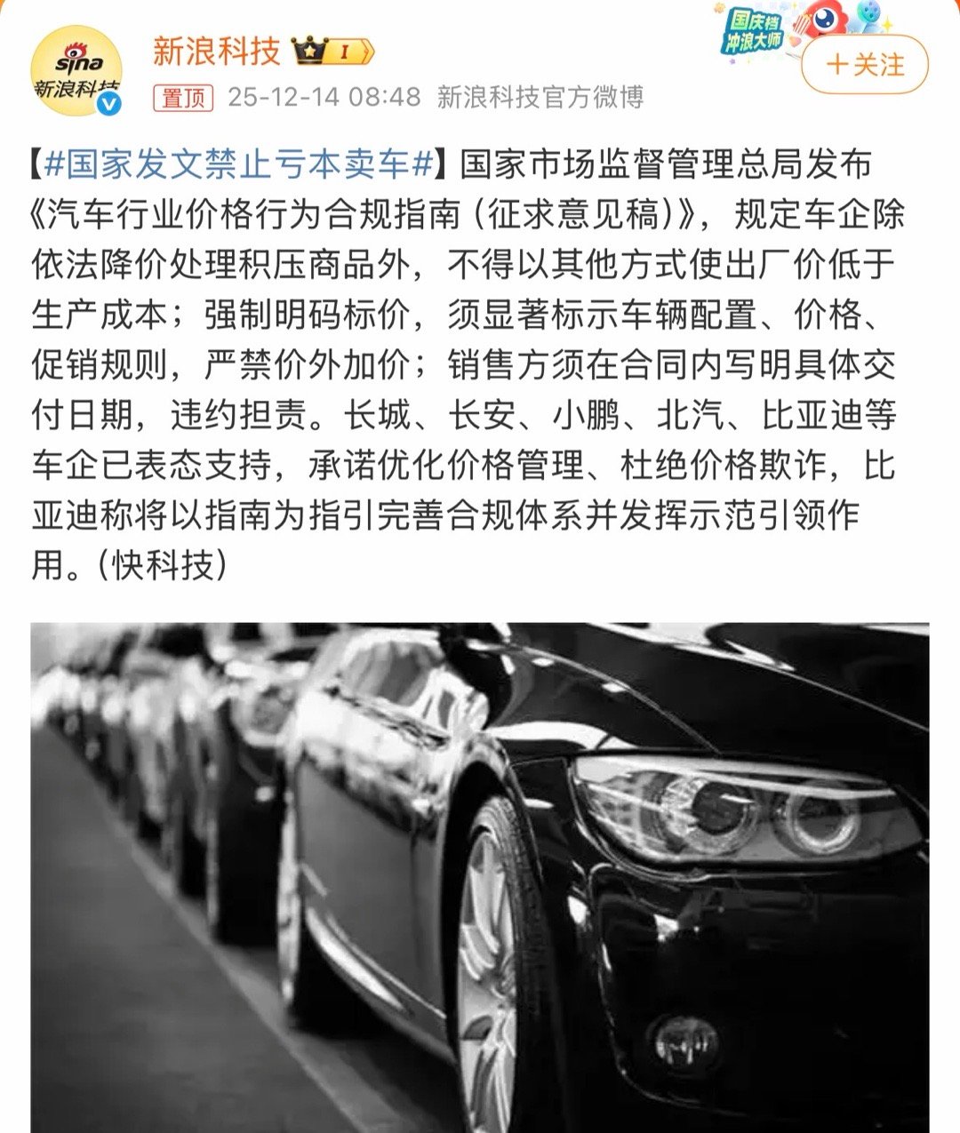 国家发文禁止亏本卖车现在还在负毛利卖车的车企不多了吧,这种企业这些年基本上都被淘汰了。而且现在即使有车企想负毛利卖车,也很难卖了,现在买车得人都怕买到暴雷的车企,买之前都会考虑一下的。PS:强调一下,文中说的亏本就是负毛利,不是净利,如果按净利计算,那好多著名车企都是负的老张聊车