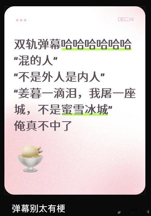 随便抓一条弹幕出来都是百万热评我算是懂了,看《双轨》得准备两个脑子一个跟剧情,一个记弹幕!现在看到靳朝和姜暮同框,满脑子已经是“双轨CP,轨道永驻”了哈哈哈!