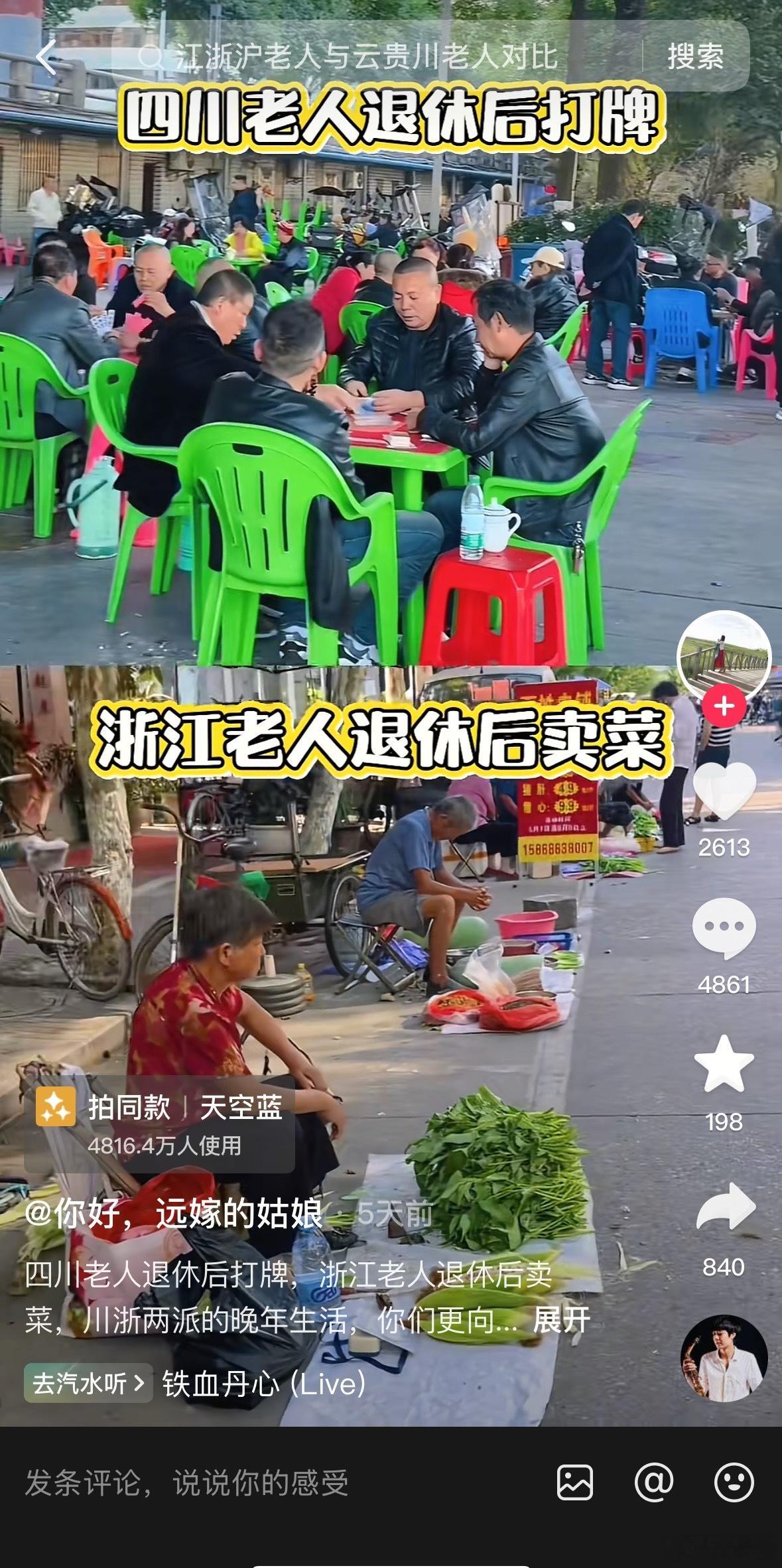 最近在抖上刷到“云贵川老人VS浙江老人”的对比视频。我就想纠正一点,浙江老人也是很爱打麻将的。但凡去拍一下浙江的老年文化中心或麻将馆呢?每天打麻将打牌不要打的太起劲,好不好。打麻将和种菜也不冲突,种菜卖菜,又不是卖一整天,卖完了去打麻将。打麻将不能说明懒,人活一辈子,老了还不能娱乐一下了?这类年轻人的心思鸡贼的很,老人都一把年纪了,还想老人们为儿孙开路。打个麻将还要被年轻人发网上对比。年轻的时候希望有老一辈开路,等自己老了,又希望可以活成打麻将或到处旅游的闲散享福老人。什么好都想占。