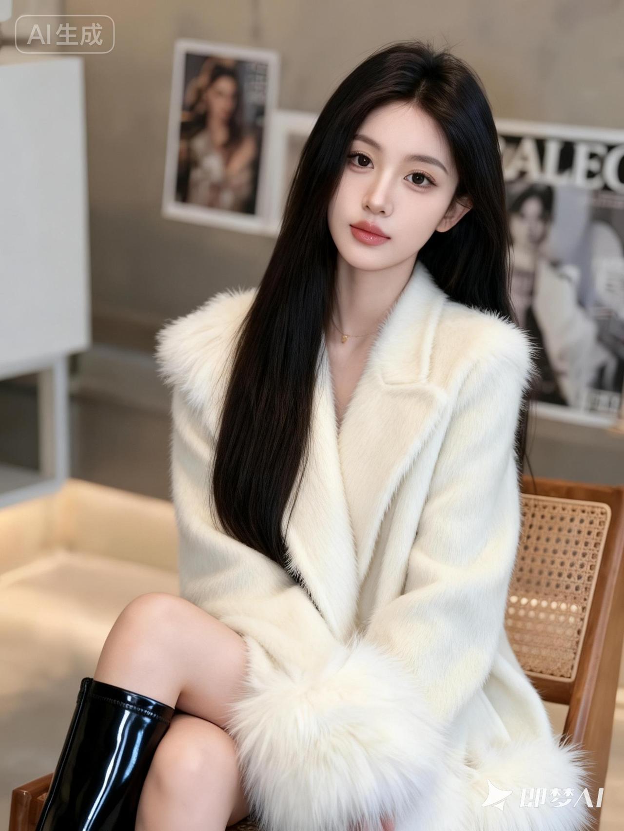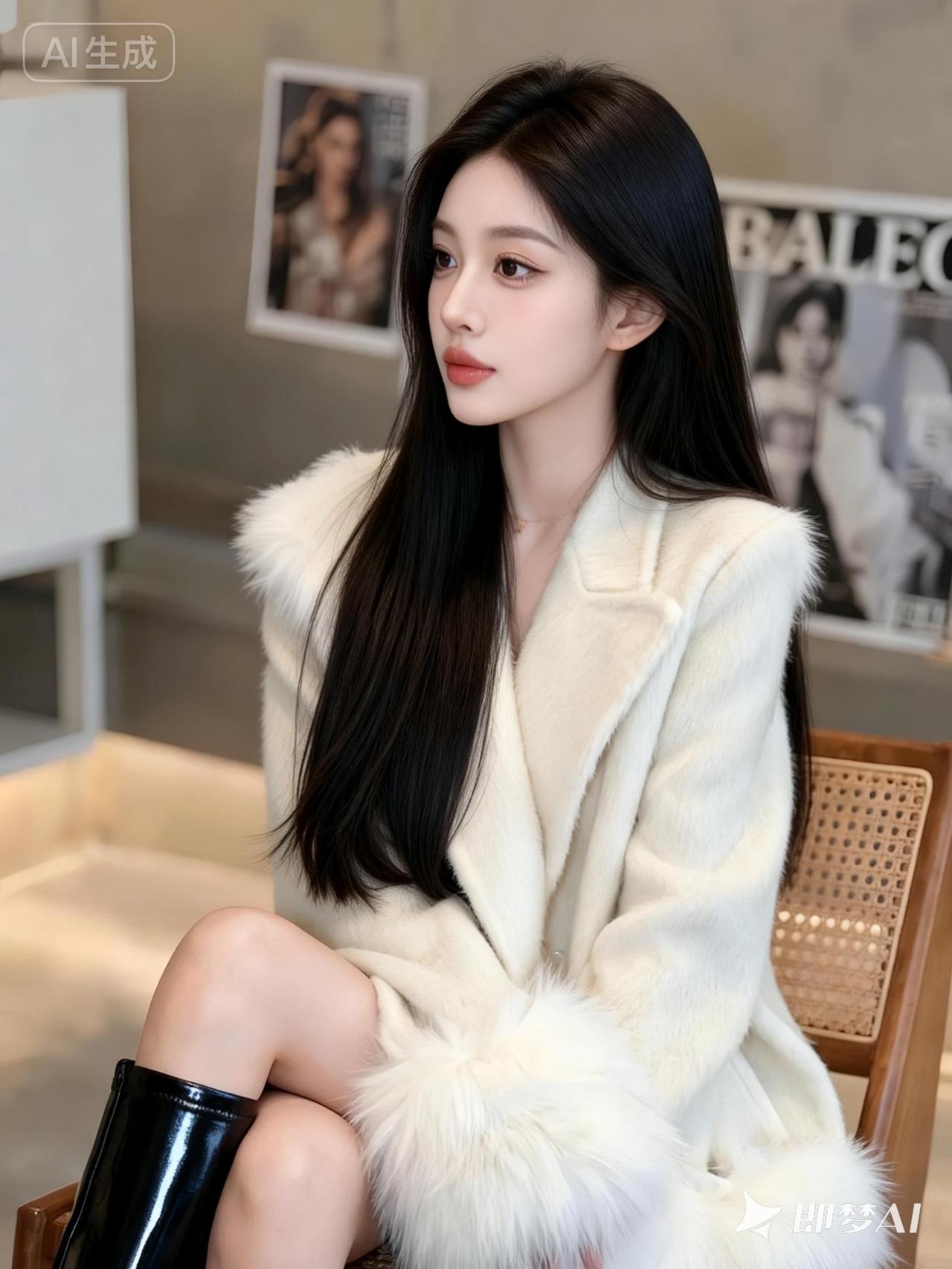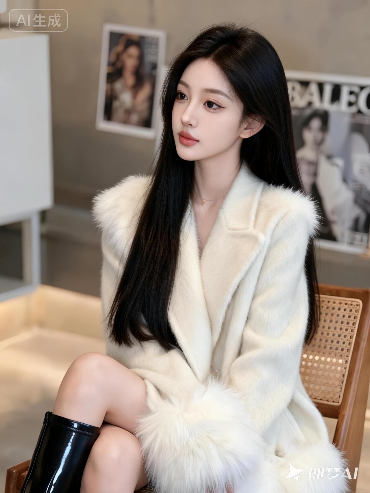 一张高清人像摄影照片,主体是一位20多岁的东亚美女,乌黑长发柔顺有光泽,妆容精致