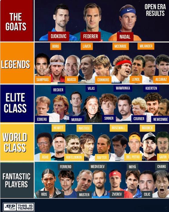 这个男网分级你们同意吗?阿尔卡拉斯来到第二级辛纳、穆雷、瓦林卡还是第三级萨芬、德尔波特罗、罗迪克在第四级梅德韦杰夫、兹维列夫、西里奇在第五级热点现场