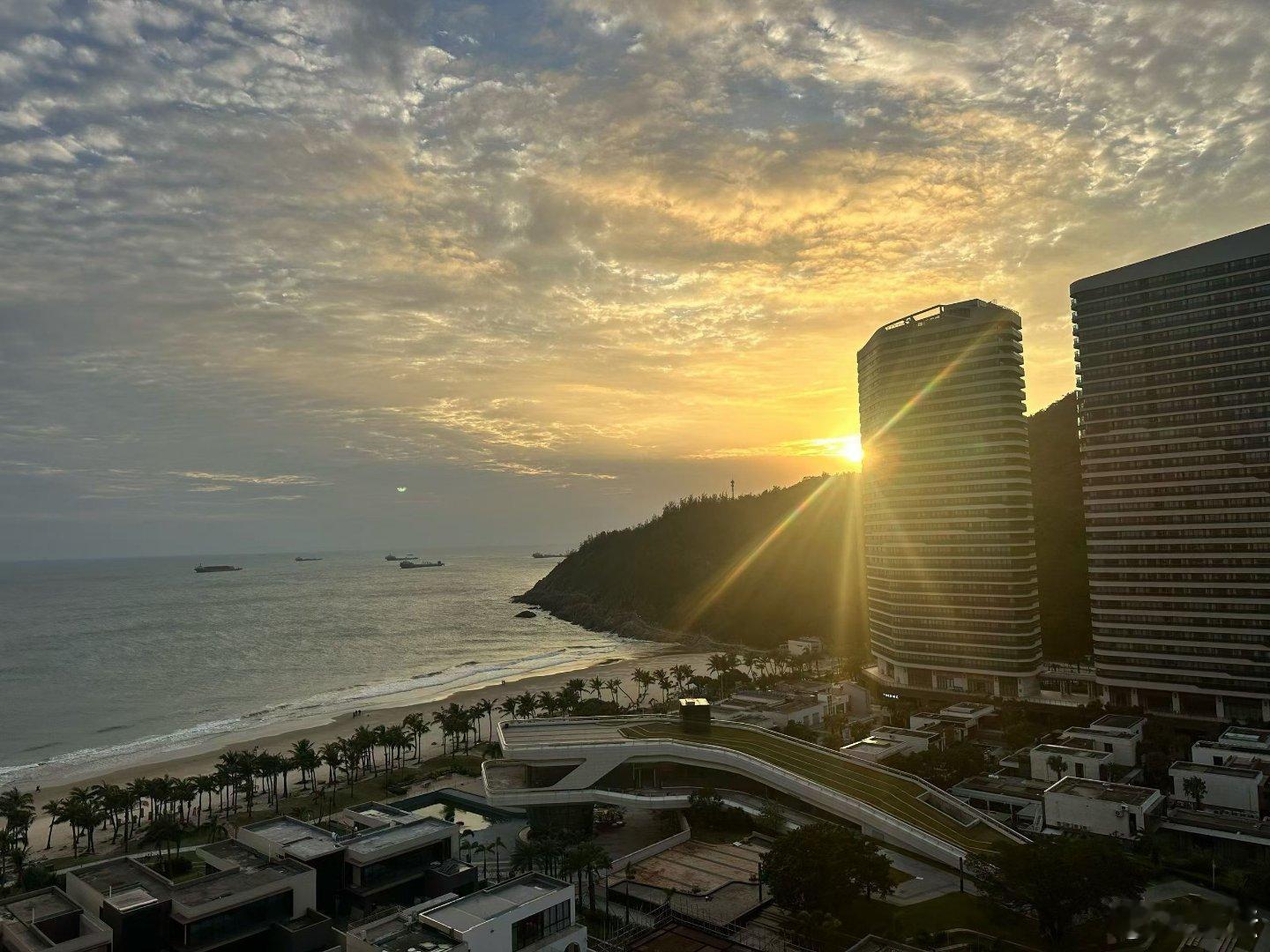 落日余晖洒满海岸,高楼与自然相融,美得像一幅画。🌅✨
