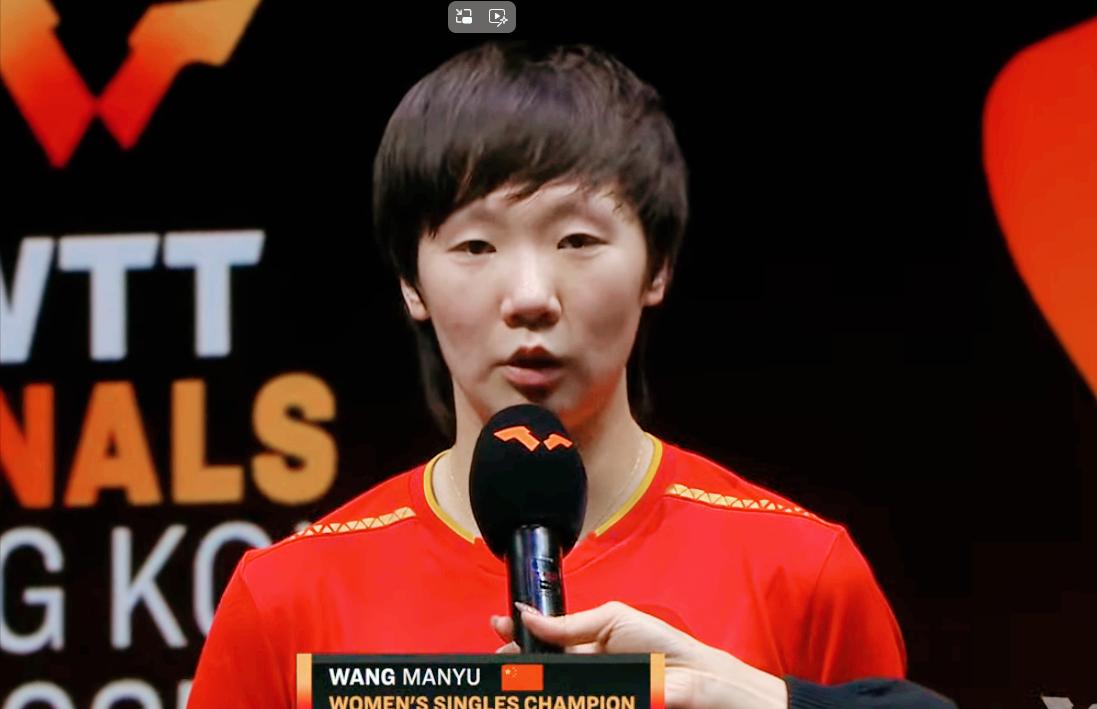 鳗鱼4:2夺冠后采访,意外高调夸了自己! 主持人问: 鳗鱼拿下WTT最后一站冠军, 如何总结这一站呢? 鳗鱼说: 我觉得自己今天发挥的非常好, 蒯曼发挥也非常好, 今晚的比赛非常精彩。 蒯曼今晚打的非常顽强 几度落后, 又几度追平, 给自己制造了非常多的压力。 能顶住压力, 拿下比赛, 这是对我自己的认可。 也做到了昨天的承诺, 为大家奉献一场精彩的比赛。 鳗鱼发言很棒, 冠军就该这样, 自信一点,