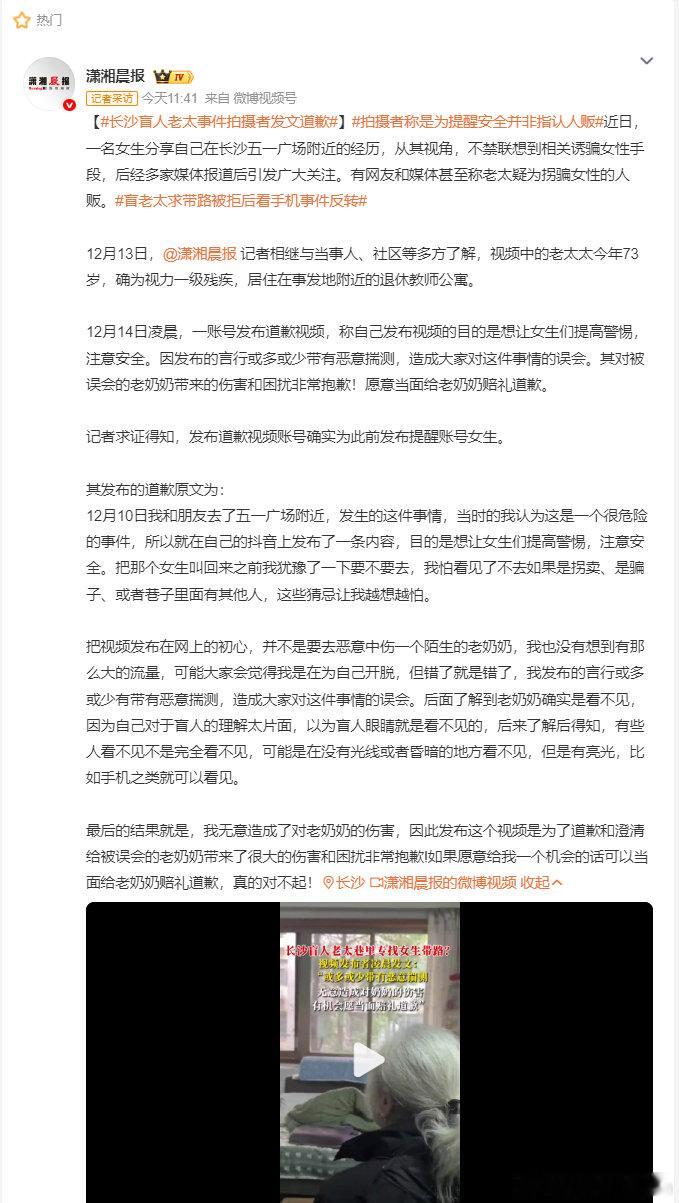 盲老太求带路被拒后看手机事件反转这到底是恶意揣测还是造谣传谣?仅仅是一个赔礼道歉就足够了吗?能恢复盲人奶奶的名誉吗?考虑到盲老太年事已高,当地可以考虑对涉事女子提起公诉,还老奶奶一个公道!