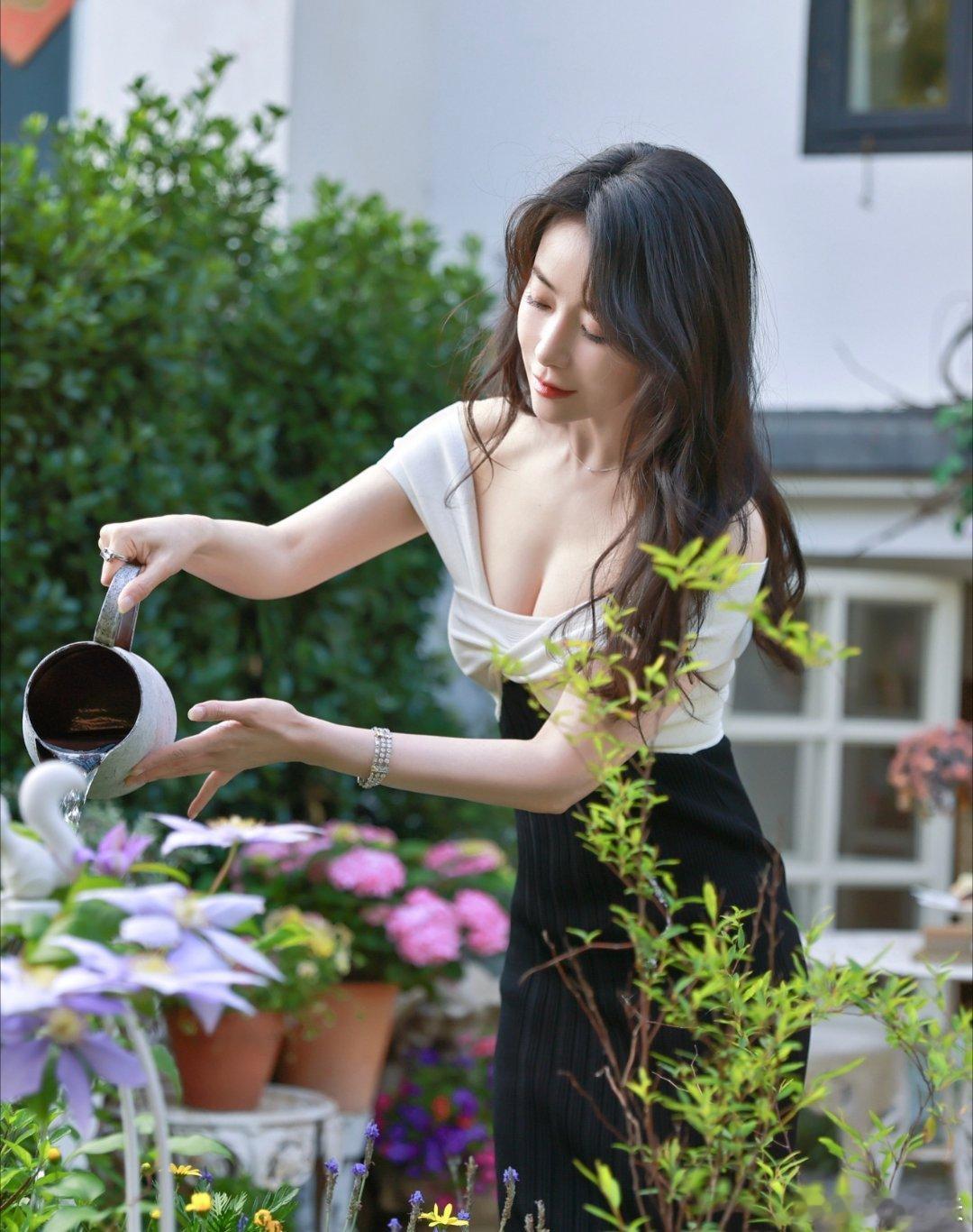 陈紫函浇花,除了粉色的花,就是白晃晃的……