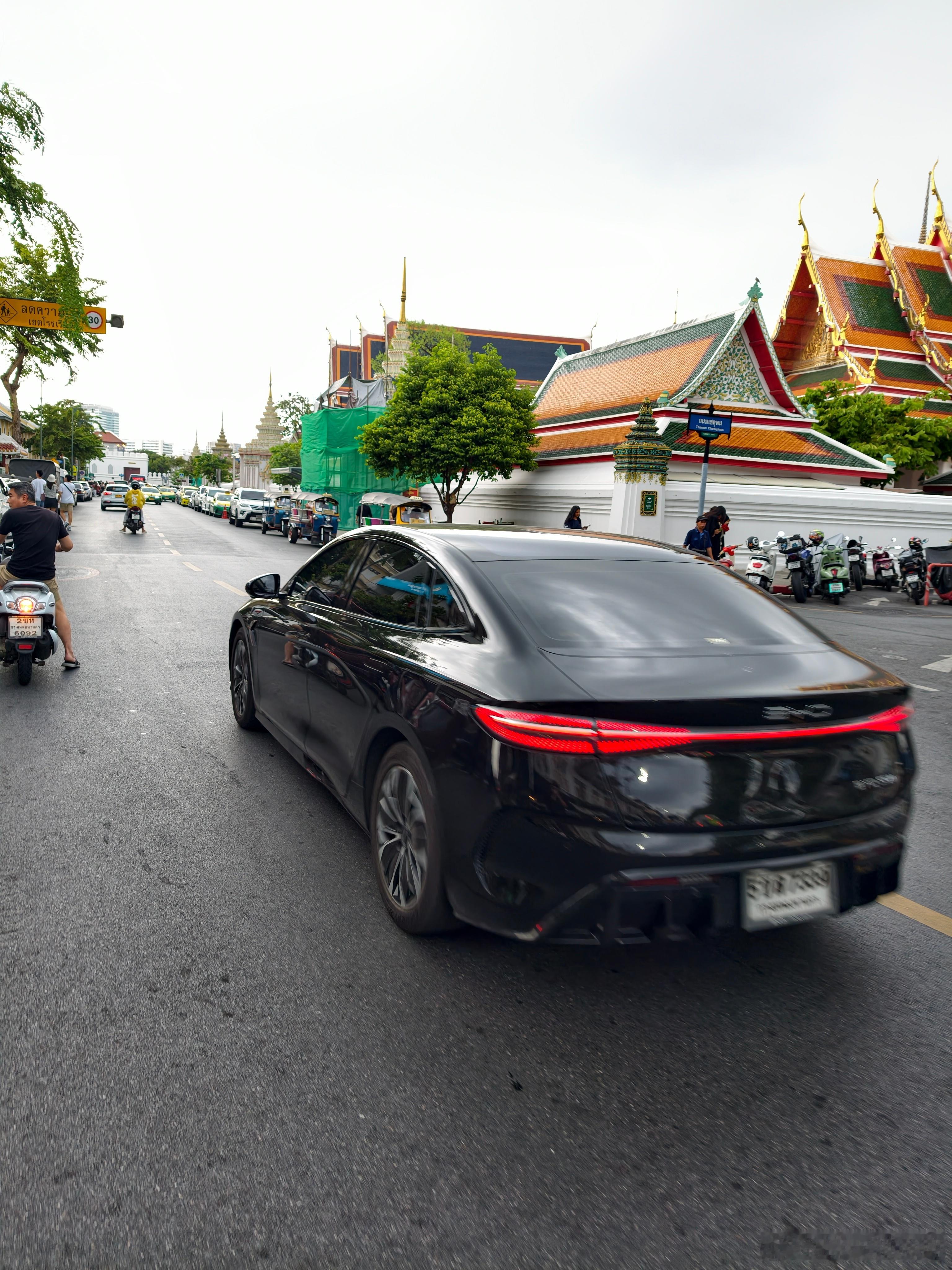 今天打泰国专车打到台比亚迪海豹,无论是这个白牌对于整体颜值的提升还是纯黑的套件也让整台车统一感更强。海外版的车机也让高级感提升不少,这台看着还是高配?门板上还是翻毛皮。大v聊车比亚迪比亚迪海豹