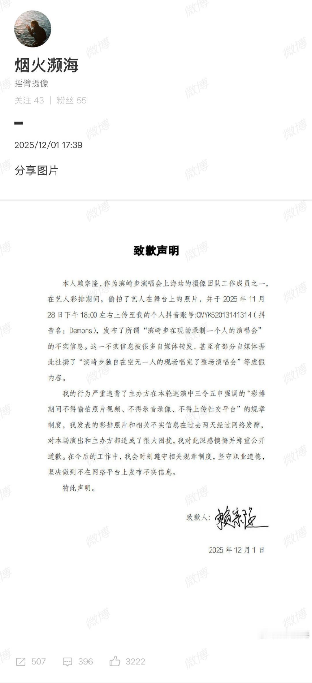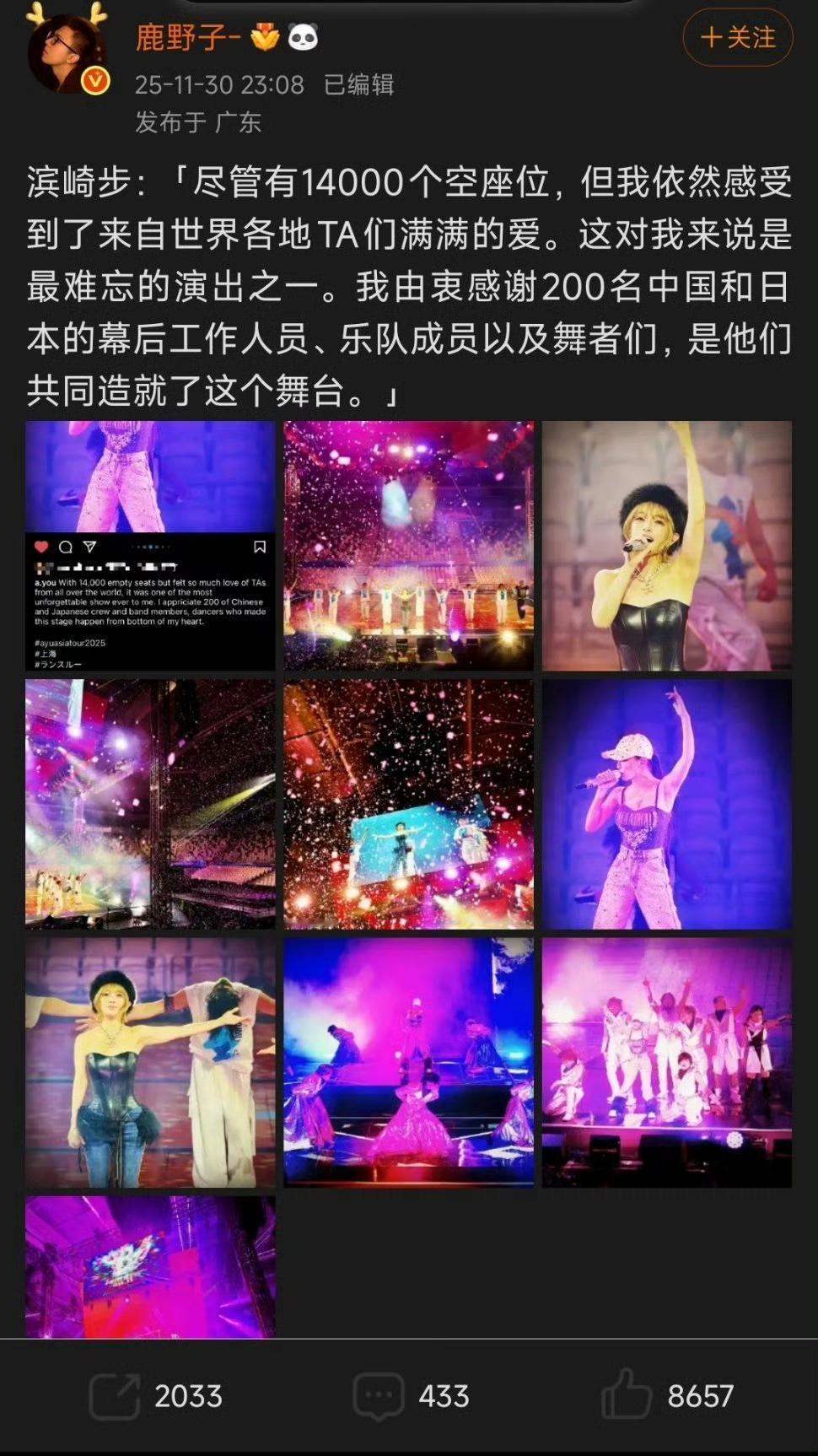 把滨崎步彩排造谣成“滨崎步的一个人演唱会”,在人们掀起对日高市早苗惊天巨浪舆论场时,而发布上述信息致舆情闪劲的某摄影博主,直接删除了2020年1月9日后的所有5年微博。包括2025年12月1日发布的致歉声明。 这人造谣怎么没有入刑? 既然道歉删除了,那是不是就说明涉崎步的一个人演唱会是不是真实的了?由此证明这个演唱会就是非法的了?那是不是可以查她,收税费啥的了? 这就是典型的日式虚无主义风格: 第一步,造假、造谣生事、恶人先告状。 第二步,鞠躬道歉。 第三步,删除道歉,让你找不到靶标。而一个人的演唱会却传了下去,让你无法岁月史书了。道歉声明封存了,混水摸鱼成功。 第四步,我都道歉了,你还要怎样。 第五步,昨天的我干的,关现在的我啥事?你不要揪着不放,斤斤计较。 第六步,昨天的我不是现在的我,但现在我还是昨天的我,我又回来了!日本回来了! 大家发现没有,每到大家同仇敌慨时,就有另有舆论起来,转移风向。十一月大家都在骂日本骂高市早苗,半路就突然杀出吸毒封存漏洞,元清问题,11月下旬又传出谣言滨崎步的一个人演唱会,给日本上了大分。 2012年,钓鱼岛事件,一把U型锁又把舆论场带回了内部。 怎么一有对日本的负面舆论,就爆发我们内部矛盾的舆论,怎么这么巧?!!!