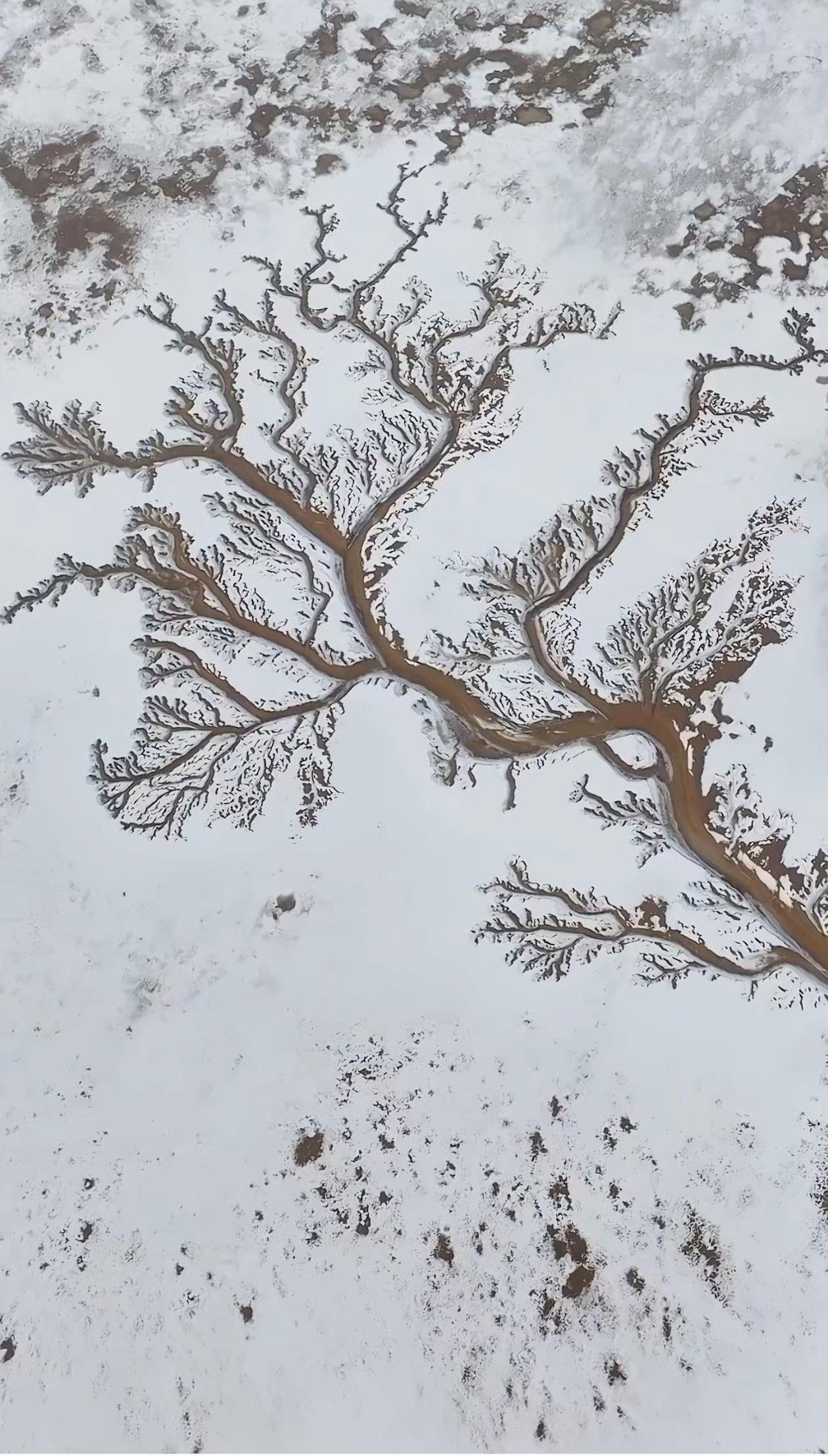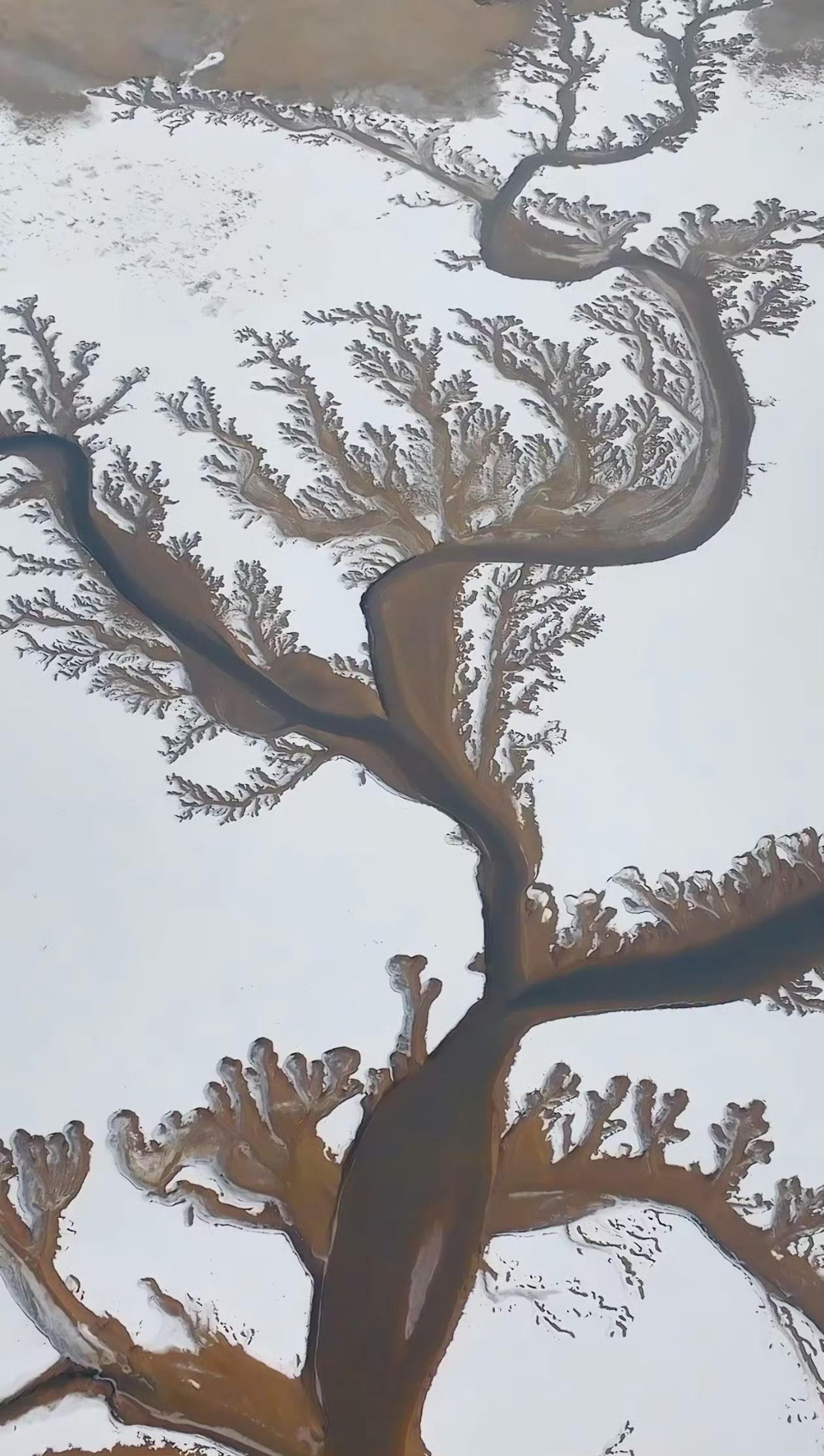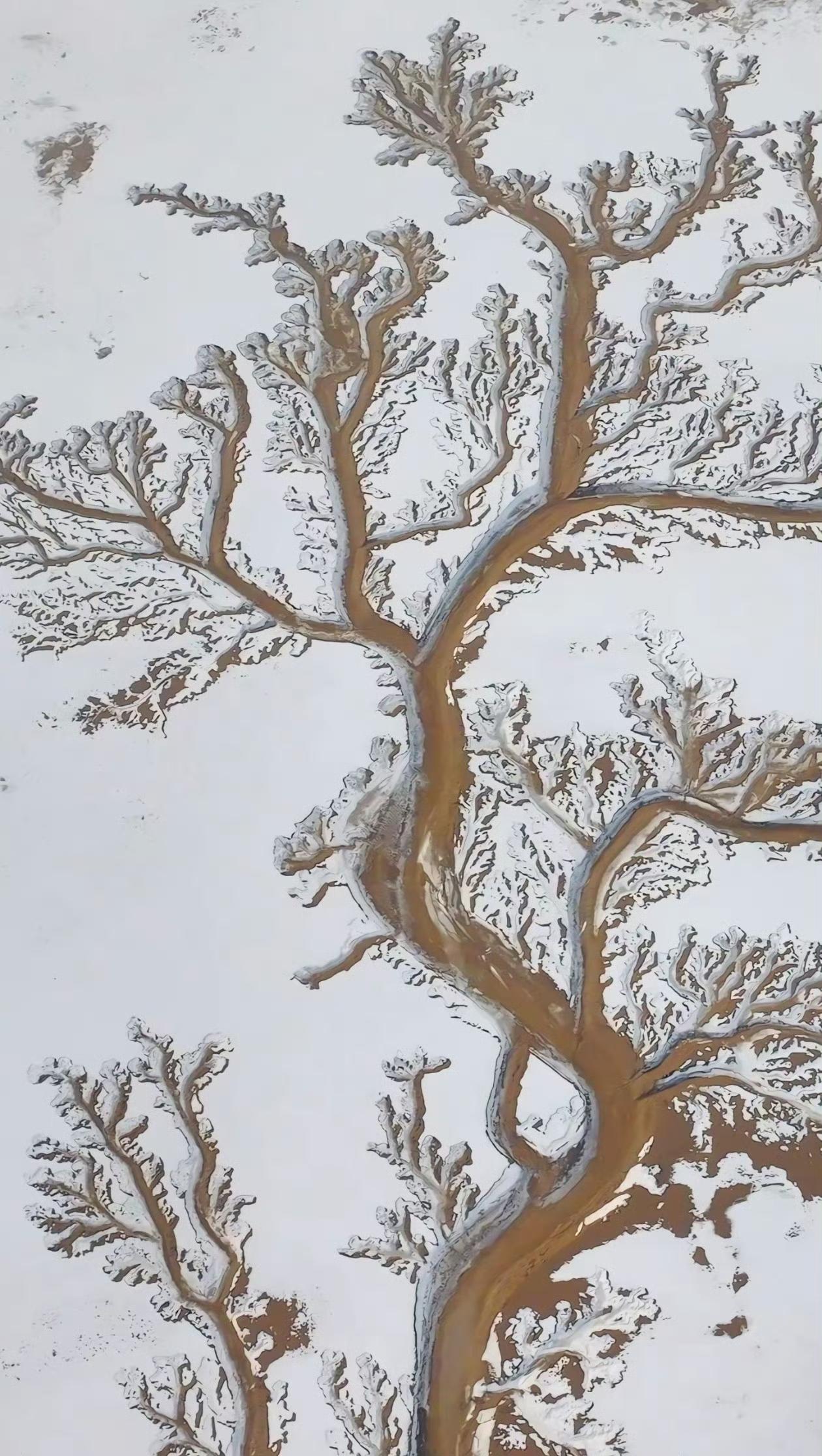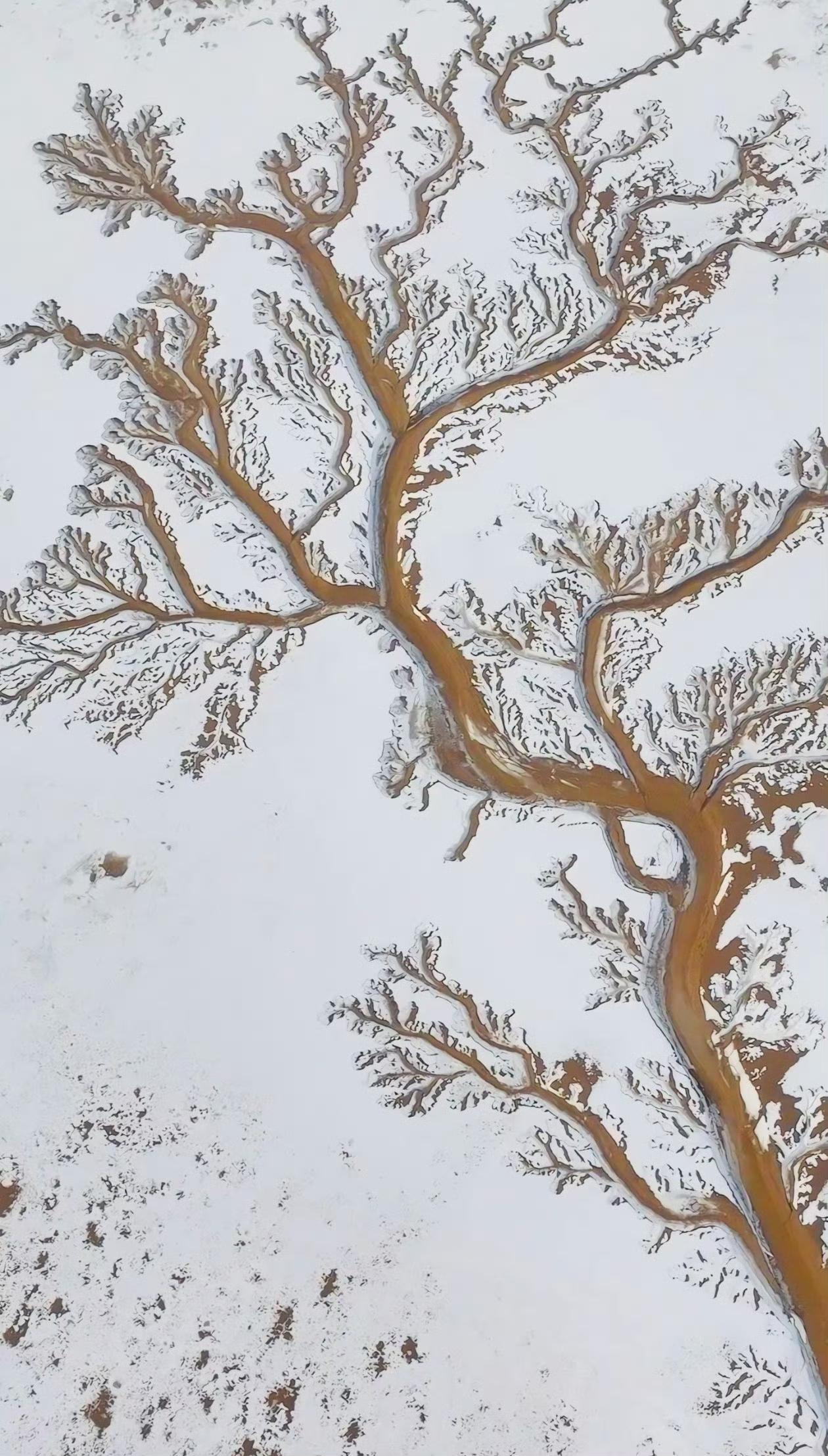太美了!大雪过后,空中俯瞰黄河入海口的潮汐树。