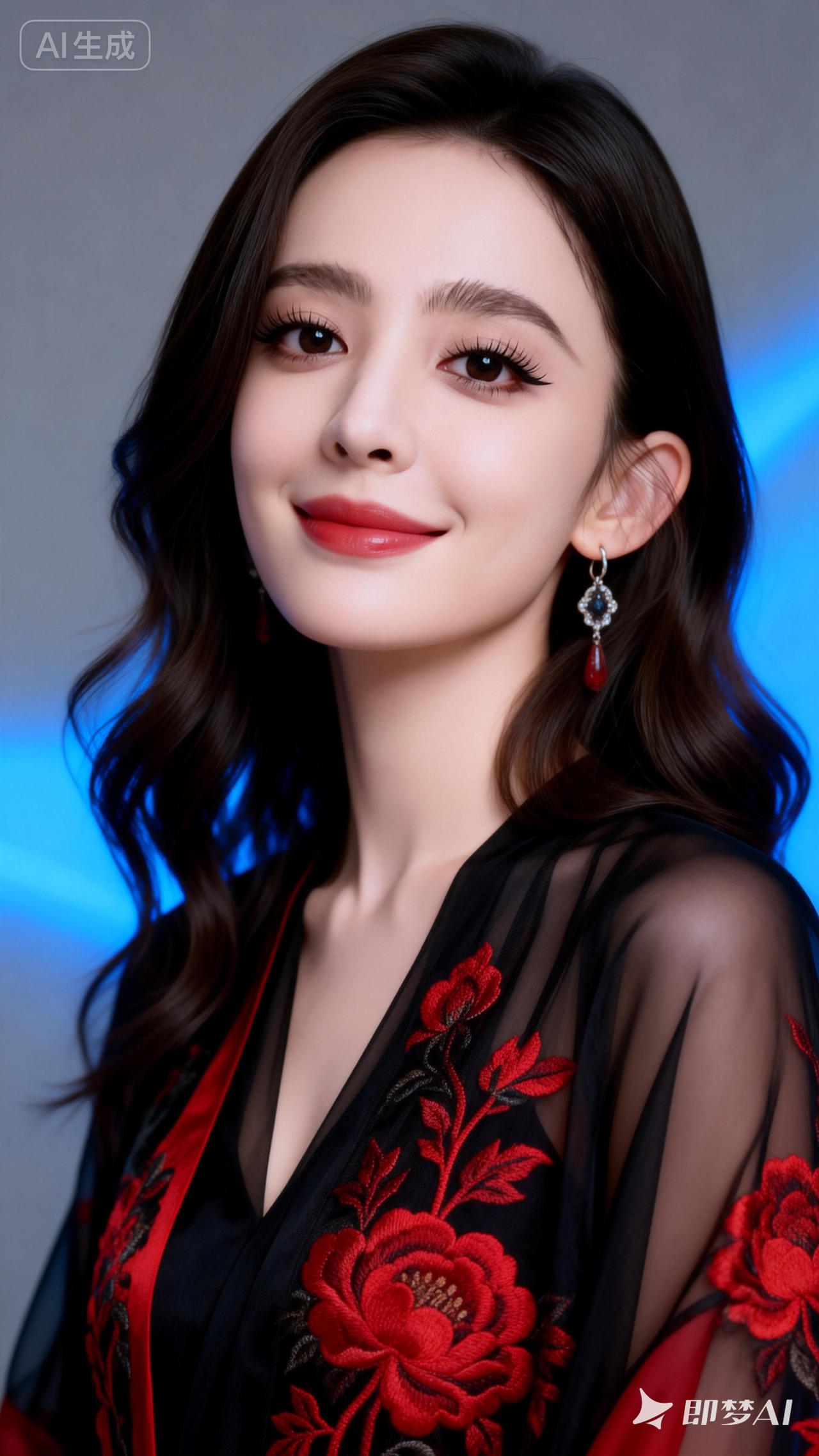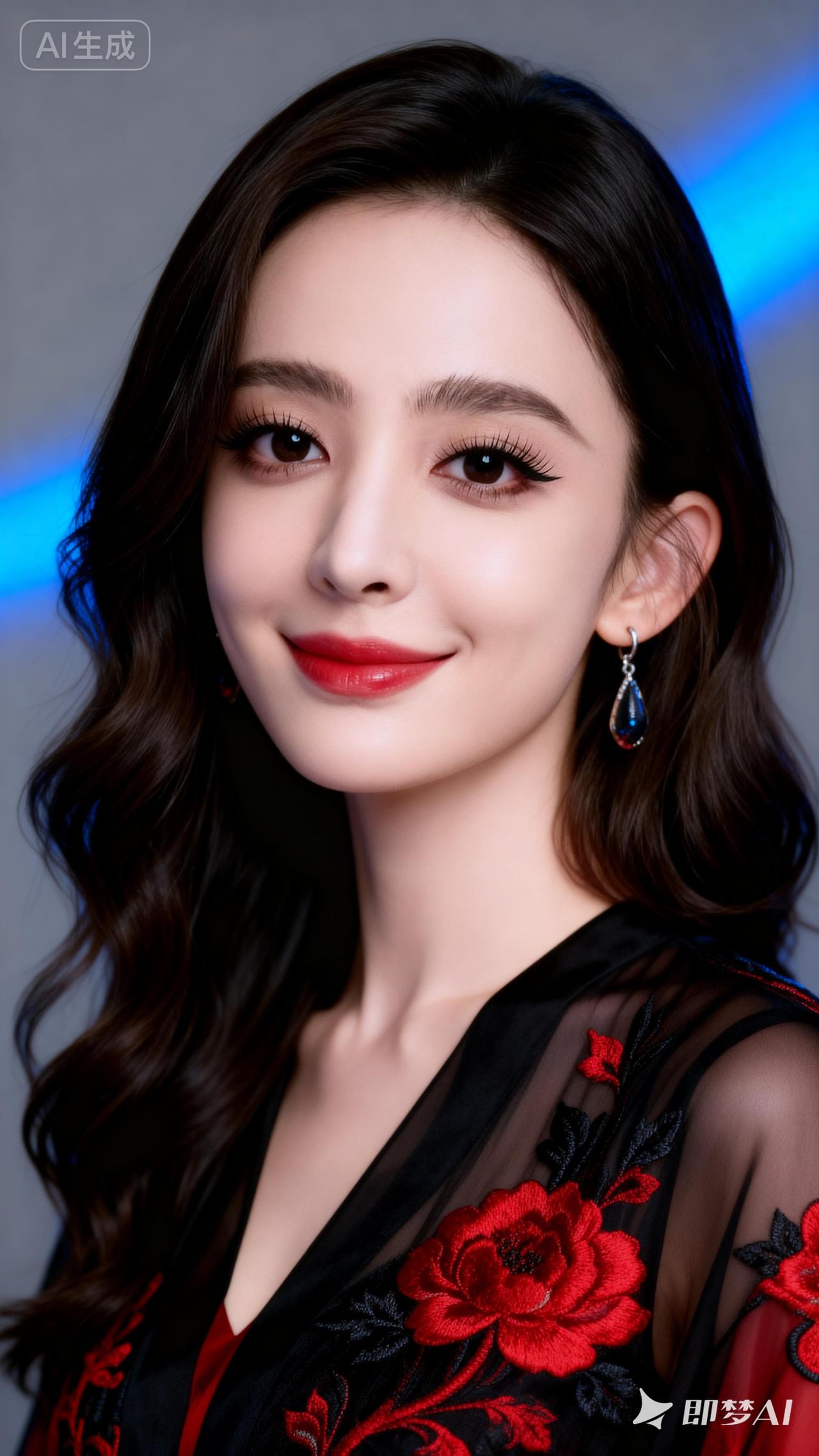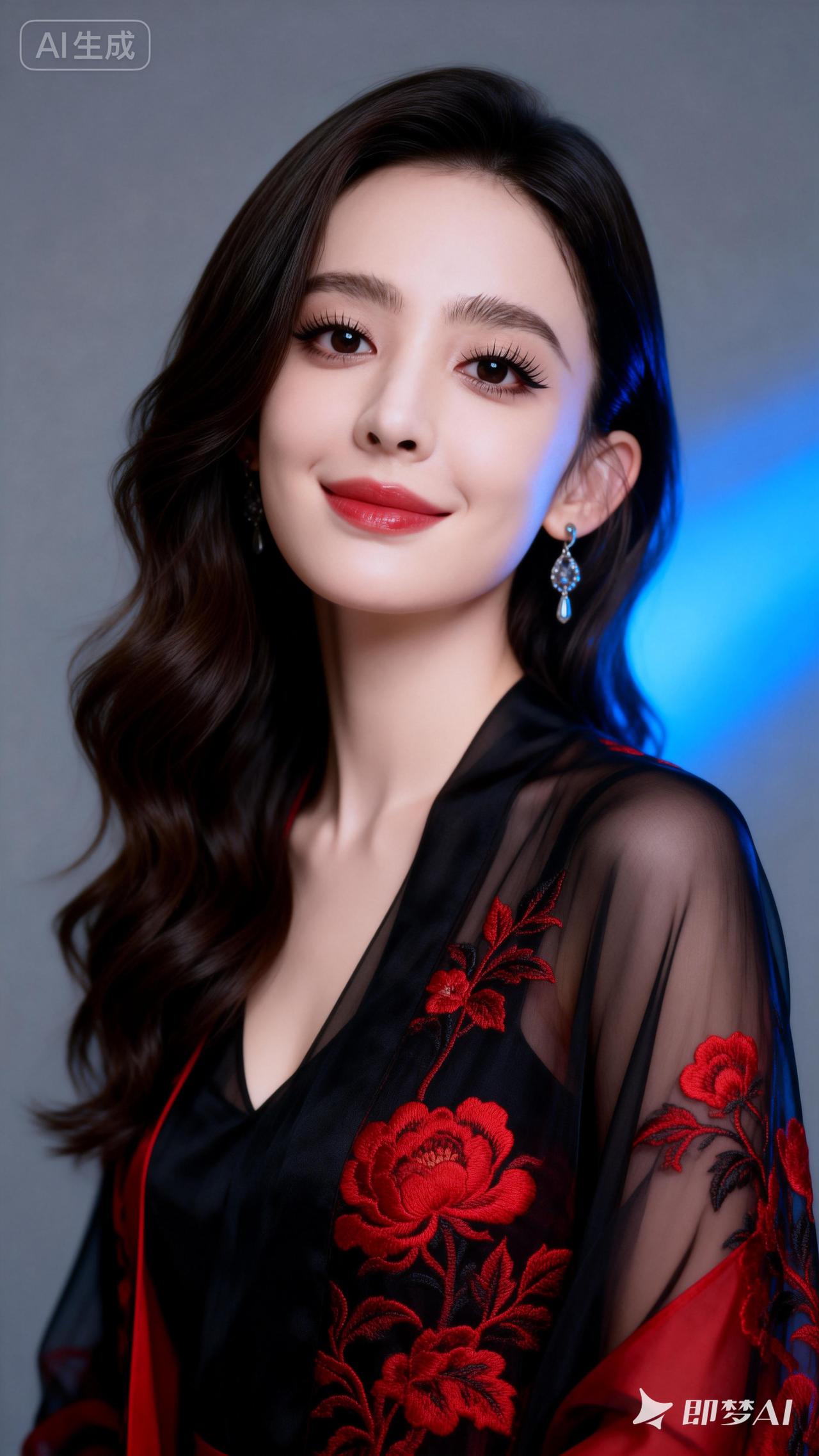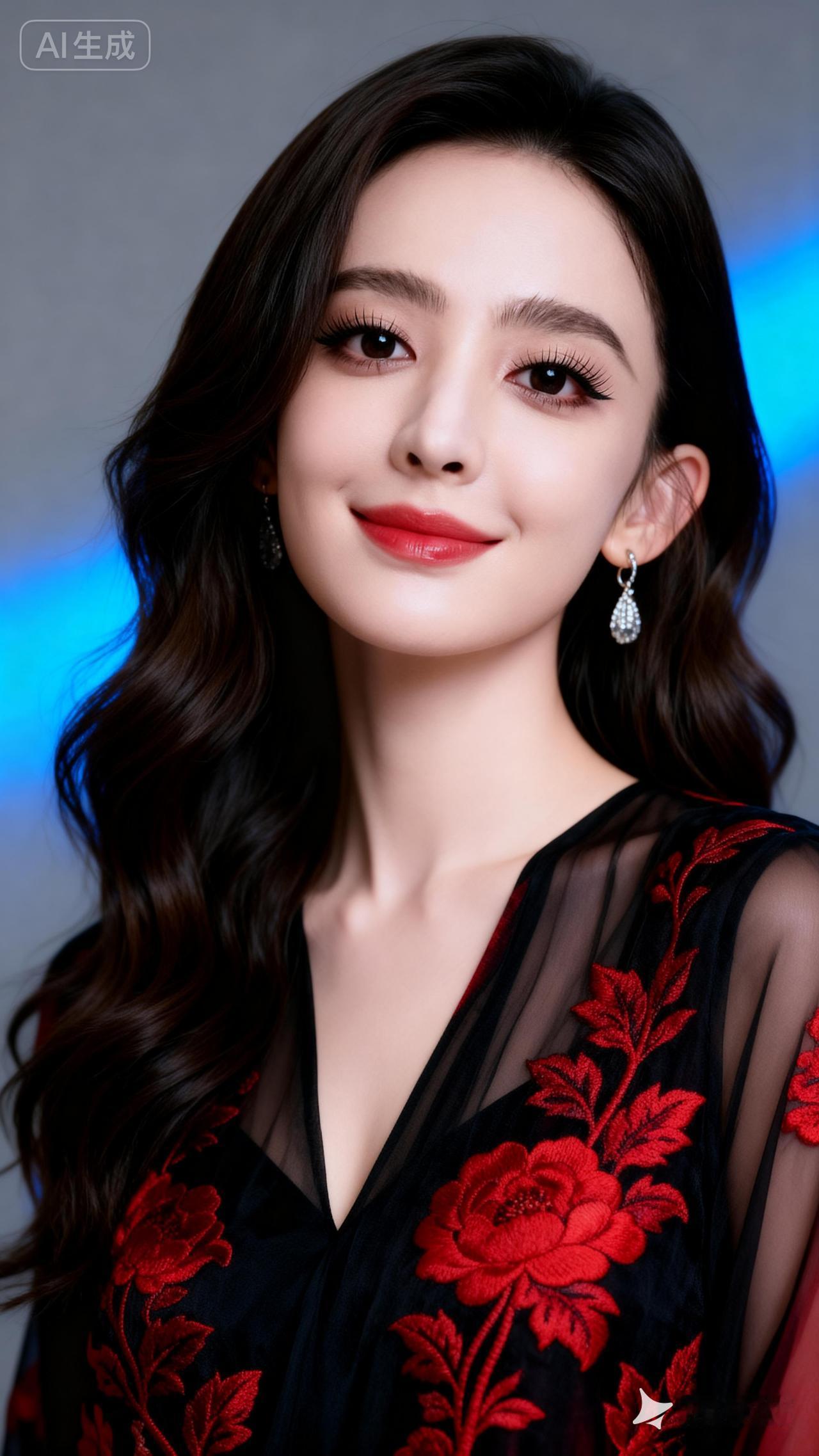 白纱裹着珍珠的柔,颈间链串轻垂肩线。红唇衬着墨发,把冷调背景里的温柔,酿成一帧皎