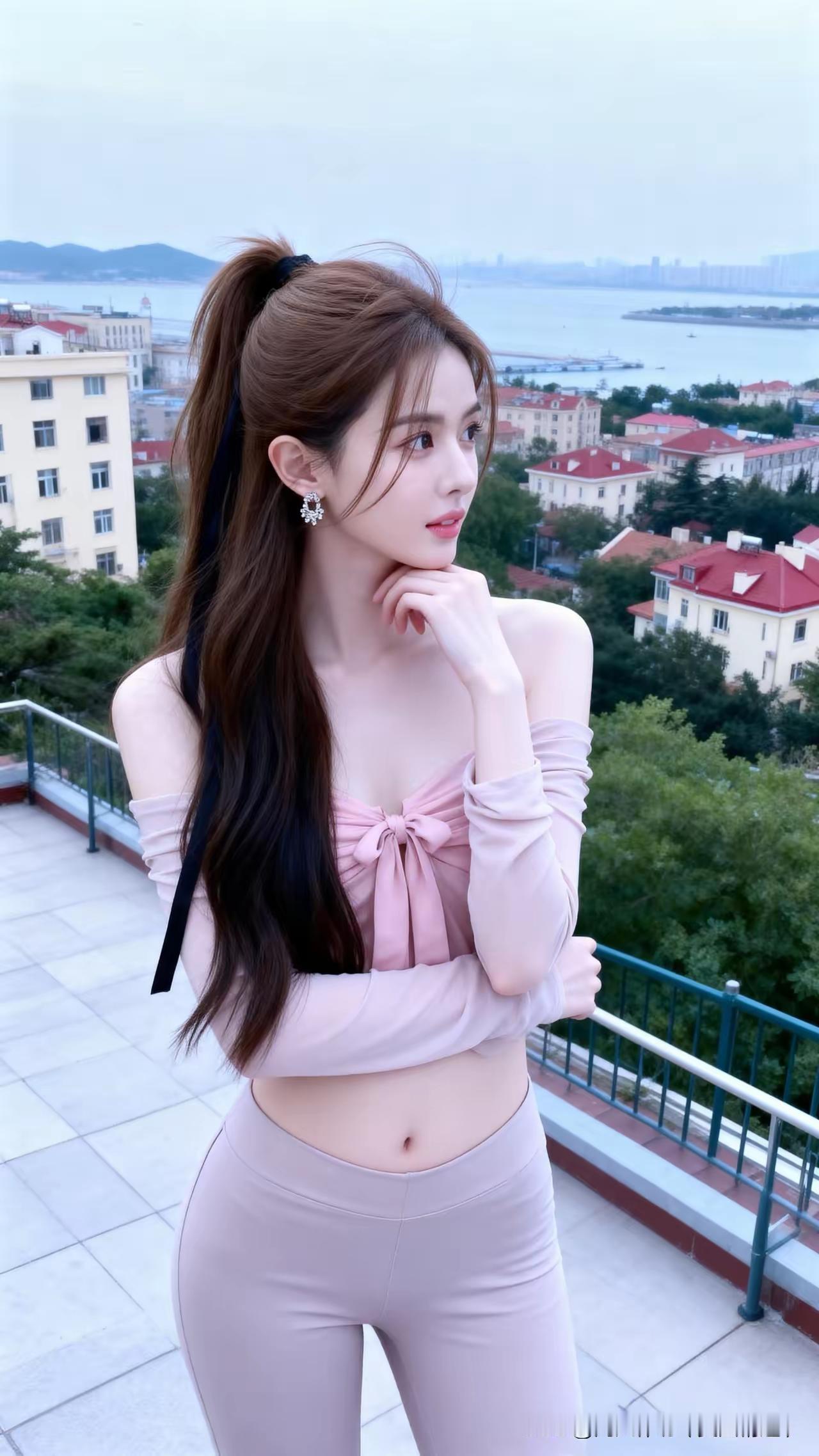 都市少女风,粉色蝴蝶结上衣搭配灰色紧身裤,优雅气质满满!