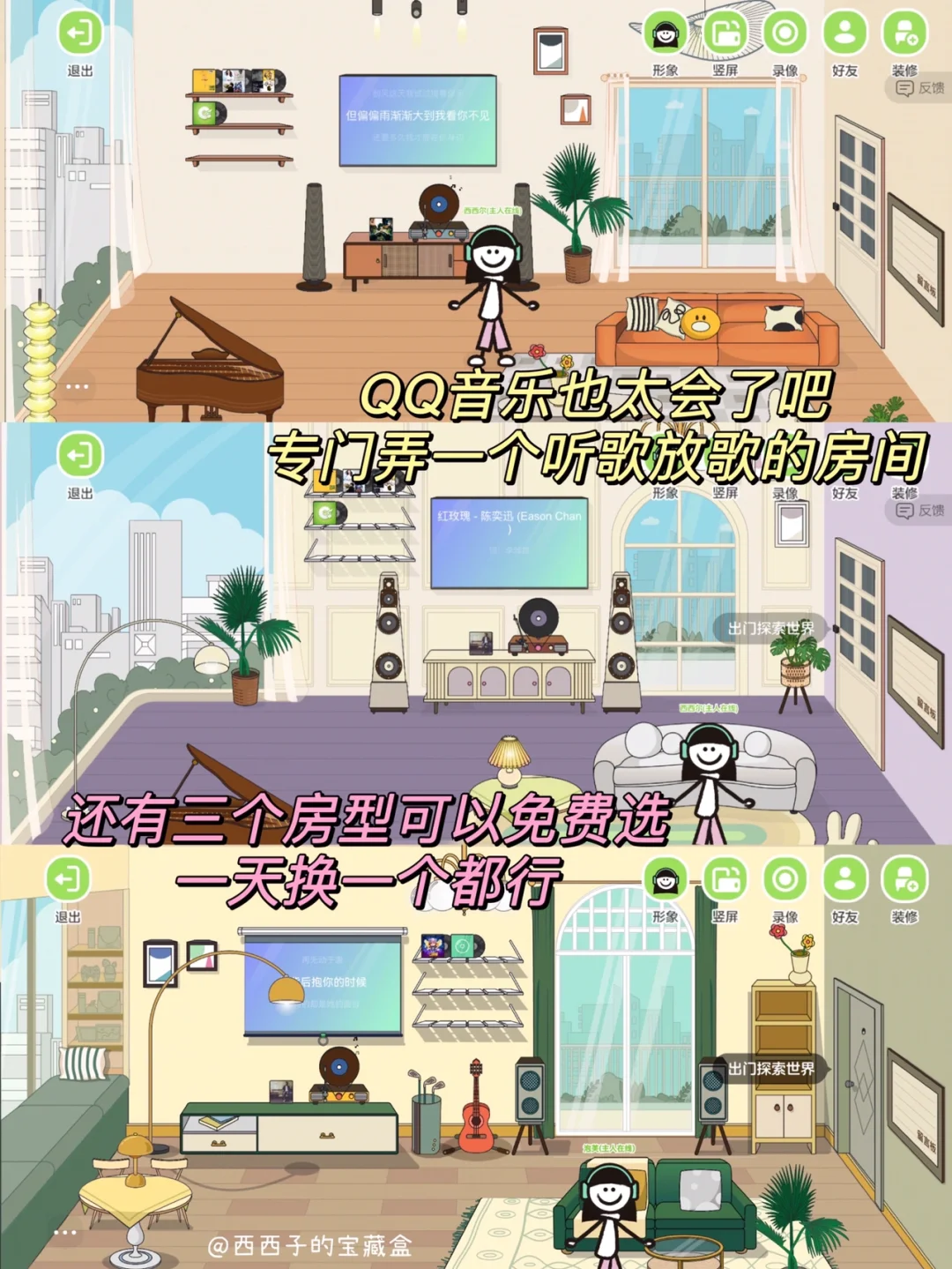 隐藏的新功能音乐空间可以DIY自己的虚拟形象,🛋️还可以选房型装扮小家,🎵让每一个爱音乐的人都可以有一个自己的音乐空间,❤️把自己喜欢的音乐放在虚拟小家,我愿称为音乐之家好嘛~!!!