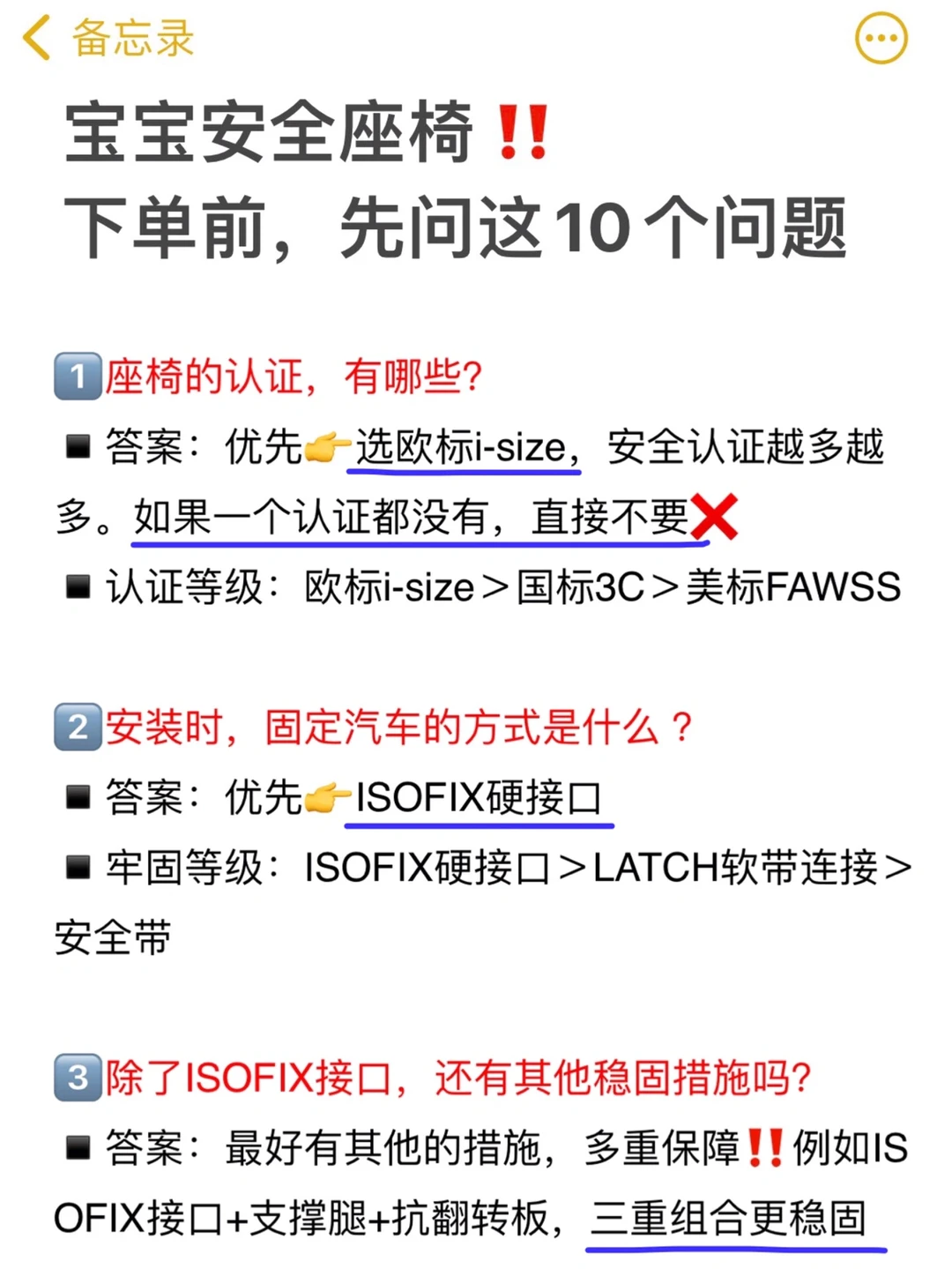 ⭕️安全座椅的选购原则