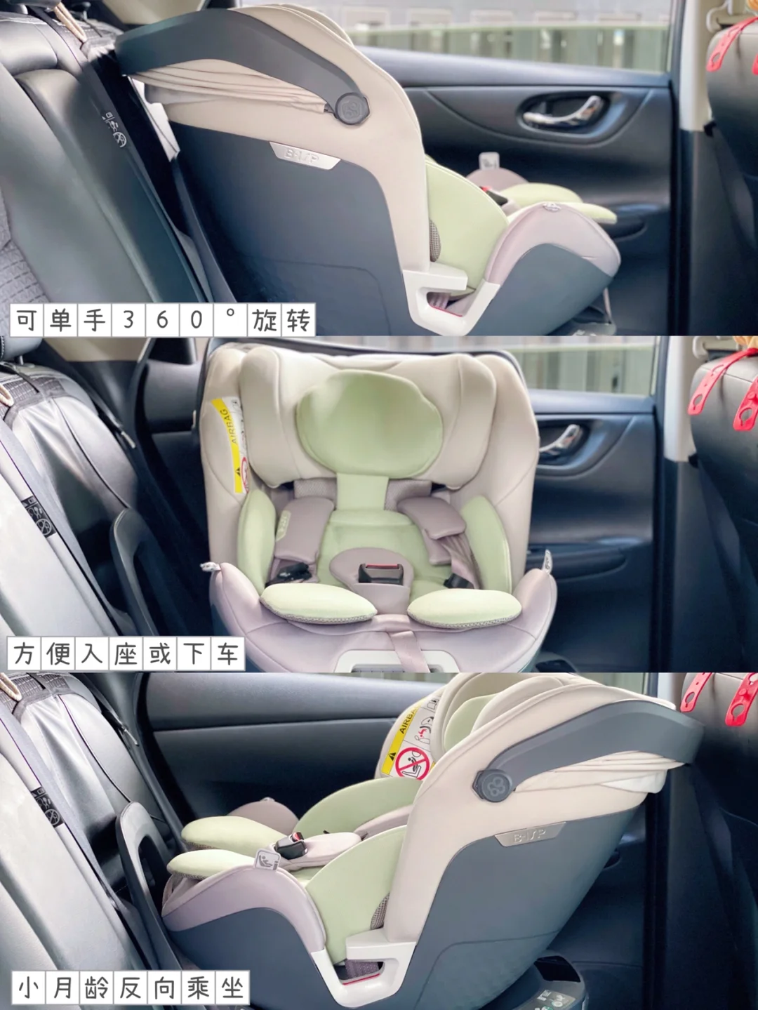 🔹它还有一个全罩式遮阳篷,遮挡阳光,营造更舒适的睡眠环境,而且可单手 360°旋转,方便妈妈车内调整方位照顾宝宝。
