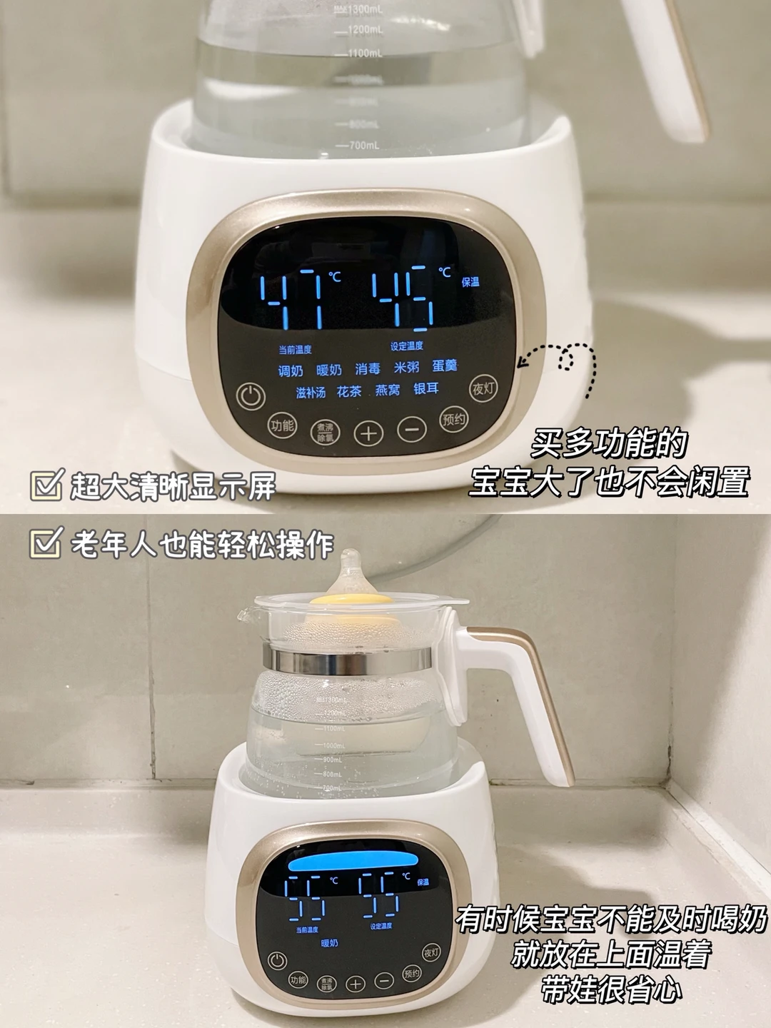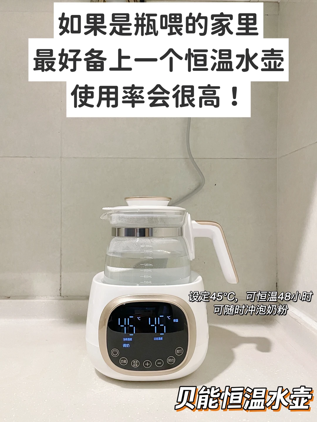 ▪️恒温水壶:瓶喂的家里必备!贝能的很好用,可以设定恒温45℃,晚上起夜直接泡奶就行,不用还要特意调整水温,省下更多时间睡觉,也不用滴手腕来测奶水温度这么麻烦,而且平时还可以用来暖奶、简单消毒奶瓶等等,而且静音省点!