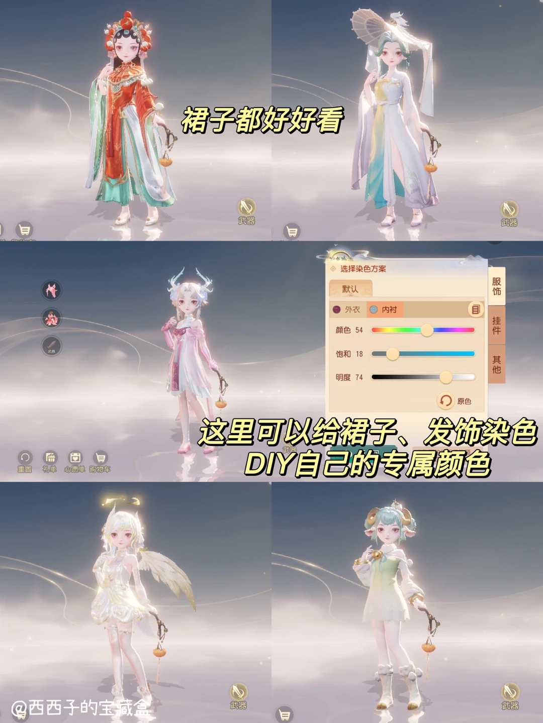 还可以换裙子,巨多漂亮裙子可以搭配,裙子、🎀发饰、发色都支持DIY染色哦,