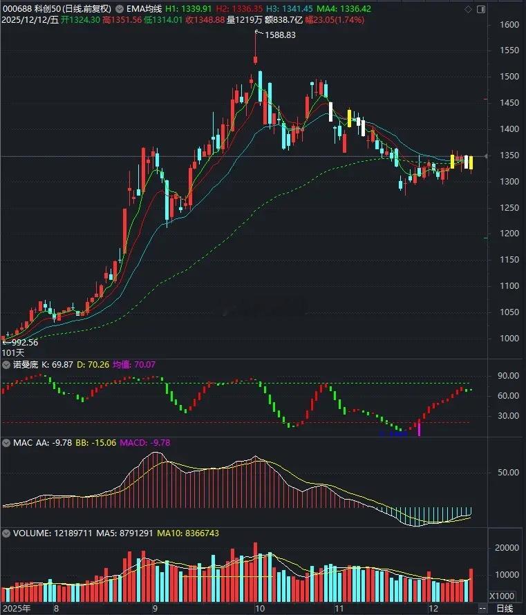 美股大跌,A股能否低开高走?美股之道指周四晚间大涨,纳指低开高走微跌,中国金龙指数也低开高走微跌。周五A股大盘开盘后惯性下跌,10点钟后开始回升,不仅反包了开盘半小时的跌幅,而且继续震荡上扬,还差一点就反包了昨日的中阴线。周四那根中阴线十分凶险,技术上出现了主跌浪迹象。不过,我们在小密圈里分析了,“这个利空的威力不大,不足以引发A股出现主跌浪”,那个下跌“只是虚惊一场,是一个短期冲击,应该很快就迎来修复”。周五A股出现修复,领涨的是科创50指数,它以1.74%的涨幅,远远高于其它宽基指数的表现。在技术上,它还出现了一个很鲜明的亮点:周四出现断头铡刀后,周五出现芙蓉出水反包。接下来,它有两种可能性,第一种是多空继续来回拉锯,股指横着走;第二种是向上突破最近5天形成的小平台。如果是后者,那就要开启新一轮第五浪上涨了。科创50大涨,半导体设备、科创芯片均表现不错。我看了一下半导体板块里的个股情况,涨幅前20名里,有16家科创公司,还有4家是创业板公司,主板公司涨幅普遍居后。我们选股的话,优先选择科创板公司;没有科创板交易权限,可以选择科创类的ETF。总体上,大盘周五惯性下跌后探底回升,化解了二次探底的可能性。科创50指数先于大盘调整,时间与空间都达标了,它出现了领先大盘启动第五浪上涨的迹象。刺激科创50出现上涨浪的契机,应该是上面窗口指导国内数据中心、云计算公司采用国产芯片,以此应对英伟达H200的倾销。…………周末重要消息:1、周五晚间,美股集体下跌,下跌的导火索是“博通销售展望未达预期”。博通跌超11%,甲骨文下跌4.47%,英伟达跌超3%。博通是做数据中心芯片的,甲骨文则是做数据库管理的,这两股大跌,会影响A股上的数据中心概念股。考验A股的时候又到了,明天能走出一个漂亮的低开高走吗?拭目以待。2、特朗普签署行政令在联邦层面统一人工智能监管规则。特朗普11日签署一项行政令,在联邦层面统一对人工智能领域的监管规则,限制各州各自制定规则。该行政令称,要想取得胜利,美国的人工智能企业必须能够在不受繁琐监管束缚的情况下自由地进行创新,但“过度的州级监管”阻碍了这一目标。这是在给人工智能松绑。3、中国经济年会:明年要扩大绿电应用,培育氢能、绿色燃料等新的增长点。韩文秀表示,明年是从能耗双控全面转向碳排放双控的第一年,要坚持“双碳”引领,推动全面绿色转型。隆基绿能以前赌氢能,错过了布局储能,这下有救了。4、传闻甲骨文部分用于OpenAI的数据中心完工时间,将从2027年推迟到2028年。甲骨文方面驳斥了这一说法,并指出数据中心不会延迟交付,所有重要的程序都在正轨上。5、芯原股份:终止购买芯来智融97%股权,拟联合投资人增资天遂芯愿并收购逐点半导体控制权。换对象了,换对象一般都是越换越好,不至于越换越差吧。6、中国光伏行业协会:“多晶硅产能整合收购平台”正式落地,实行“承债式收购+弹性封存压产能”的双轨模式运行。赶紧上增资协议吧,刚注册的30亿元不够塞牙缝。