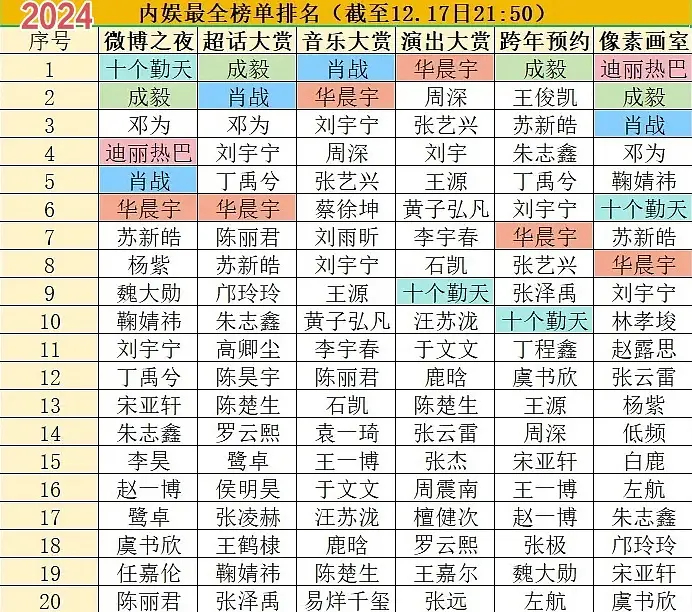 华晨宇是不是最长红的顶流了,十二年稳居内娱打投上位圈,从2014开始就是wbzy打投前列,粉圈堪称内娱活化石。
